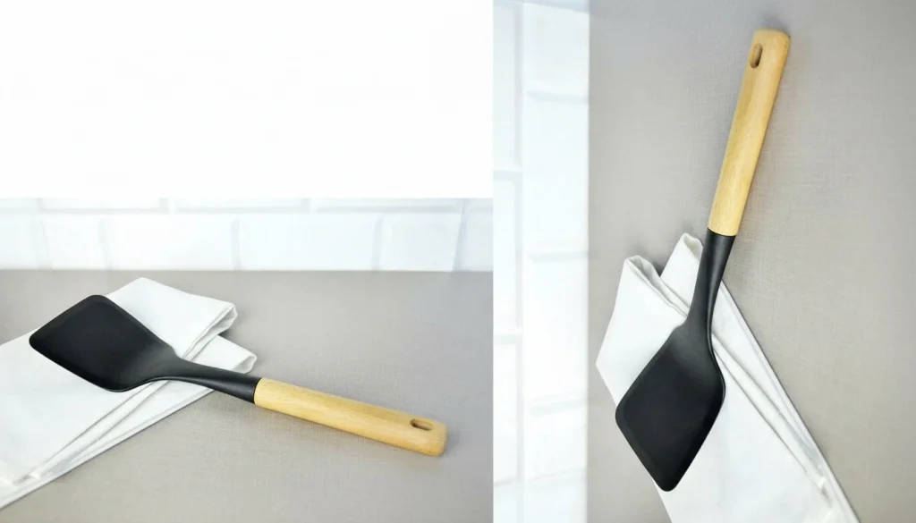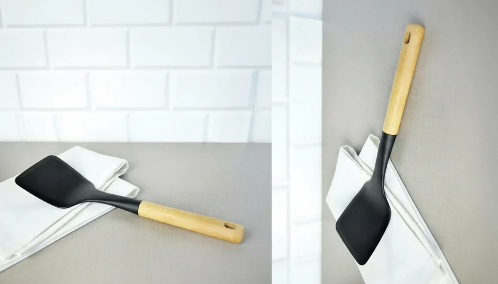 Şıklığı ve fonksiyonelliği bir araya getiren bu ahşap spatula, mutfaklarınıza hem zarif bir dokunuş hem de uzun ömürlü kullanım sunar. Doğal ahşap sapı ve BPA içermeyen yapısı sayesinde hem estetik hem de sağlıklı bir mutfak deneyimi yaşarsınız.