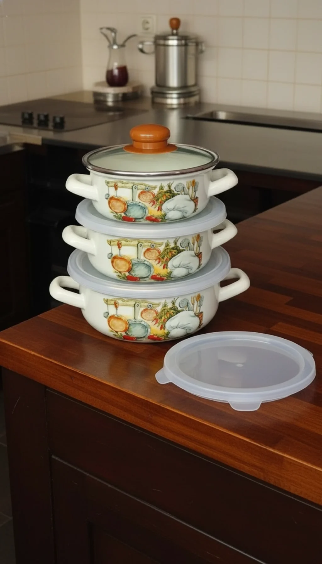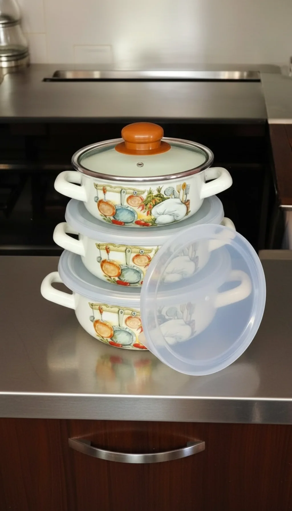 Kapak Yapısı: 1 Adet Isıya Dayanıklı Cam Kapak + 3 Adet Vakumlu Saklama Kapağı.