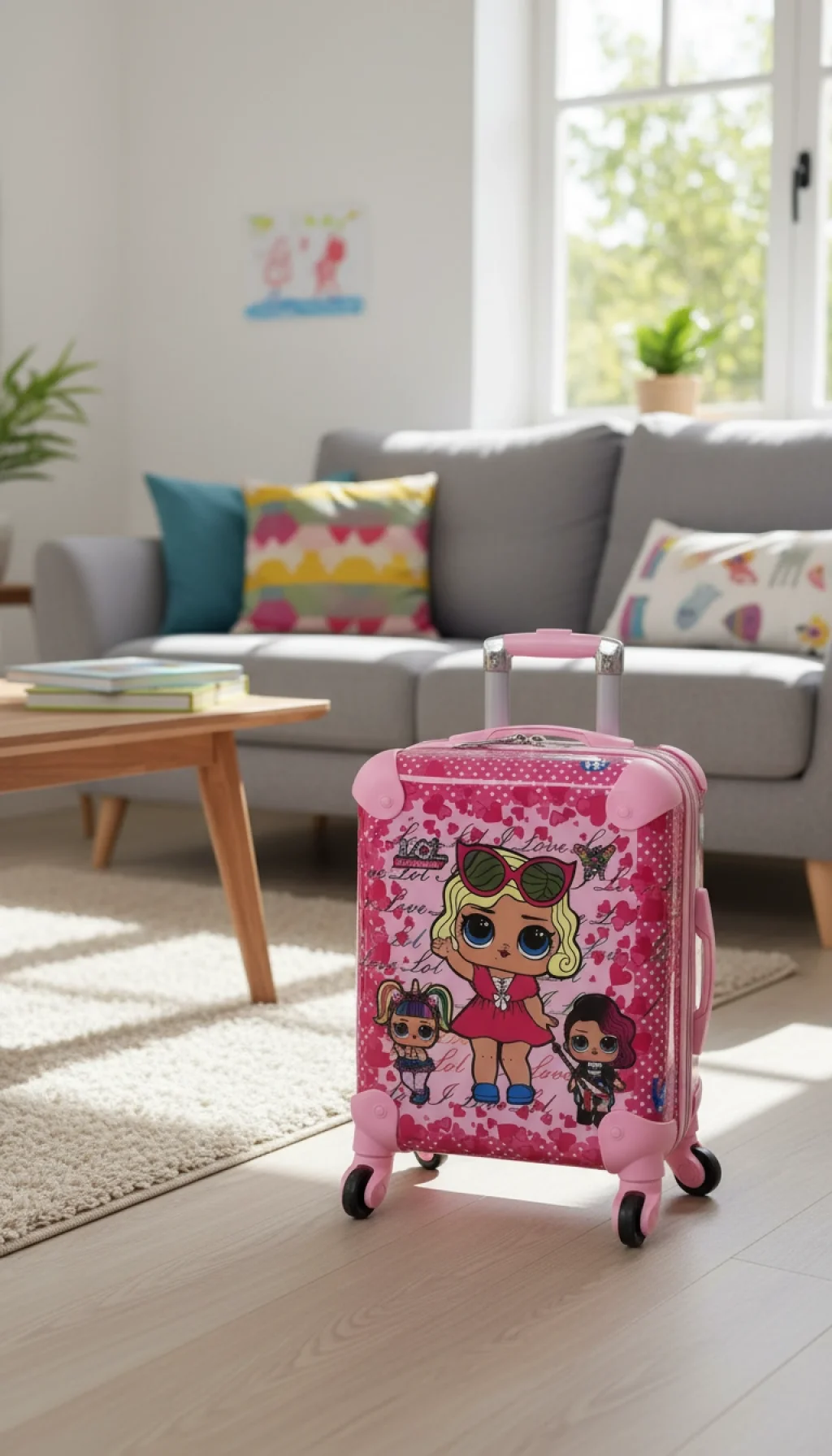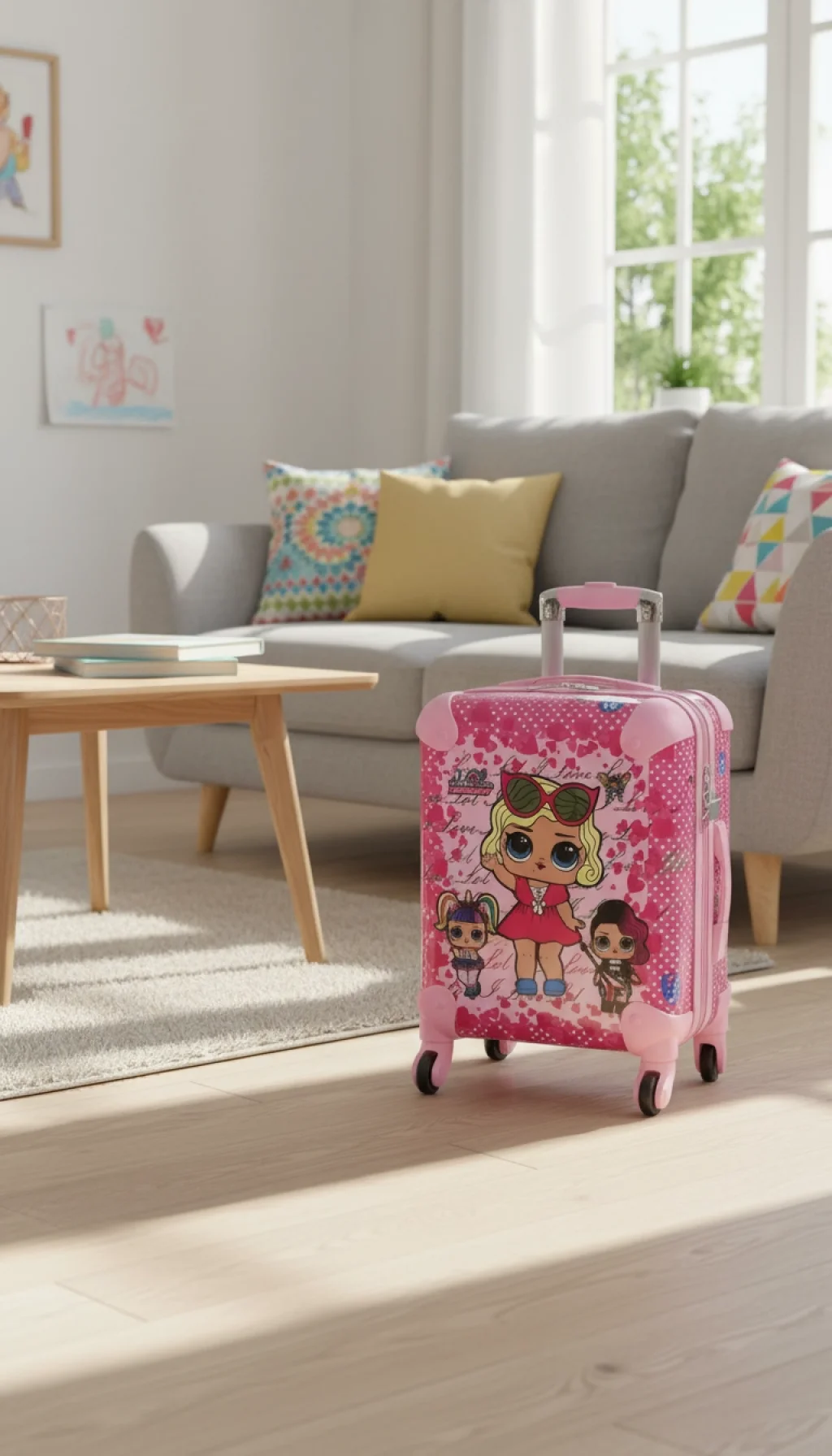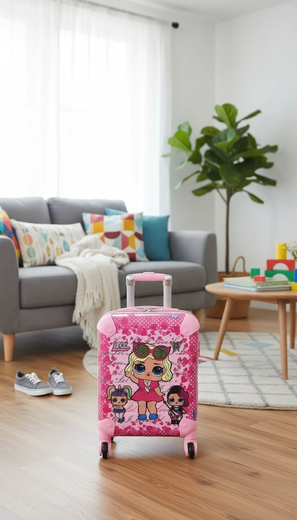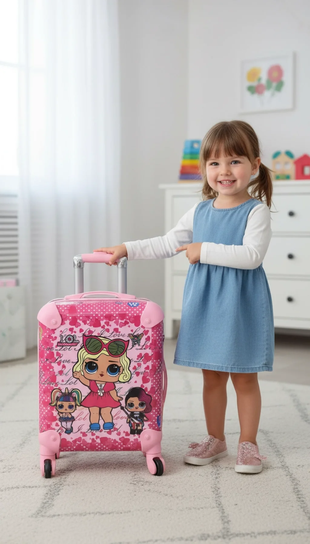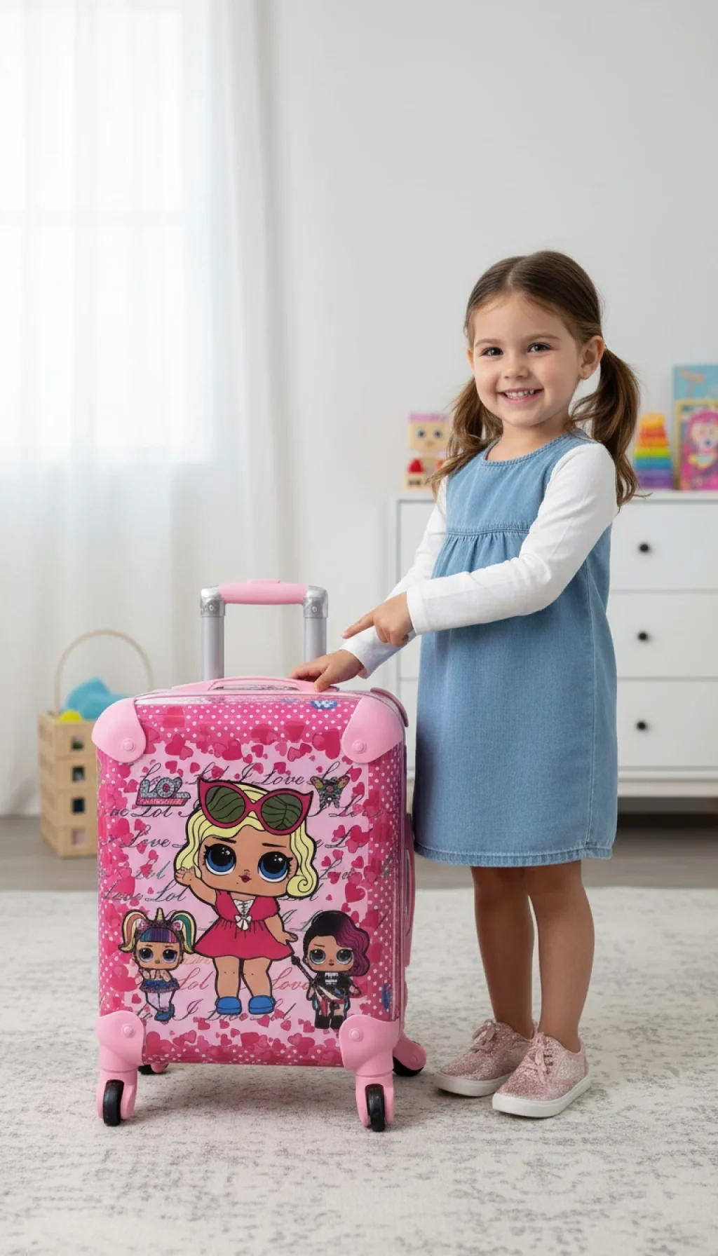 Çocukların seyahatlerini hem eğlenceli hem de güvenli kılan bu valiz, canlı lol bebek baskısı ve dayanıklı plastik yapısıyla öne çıkıyor.