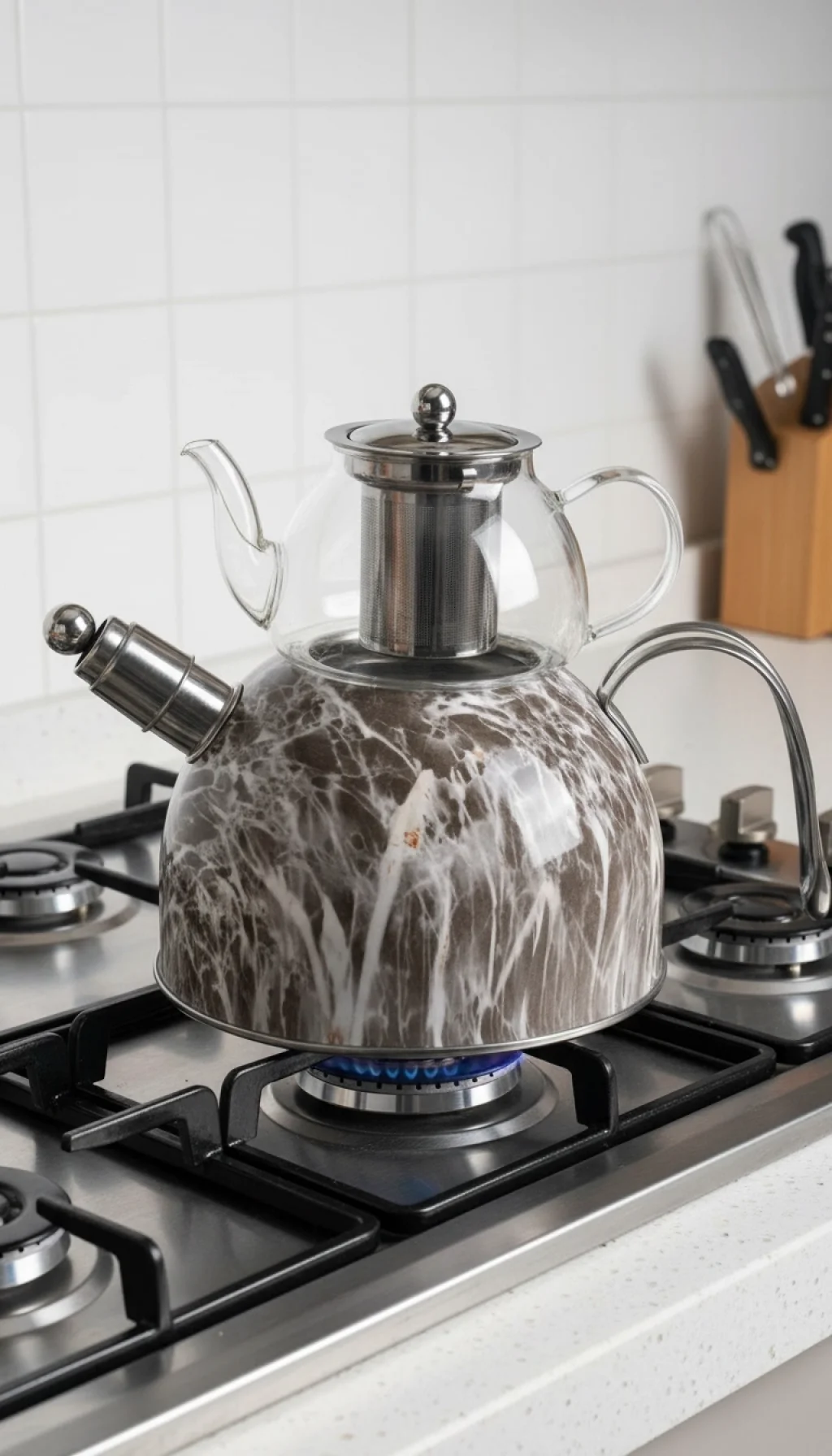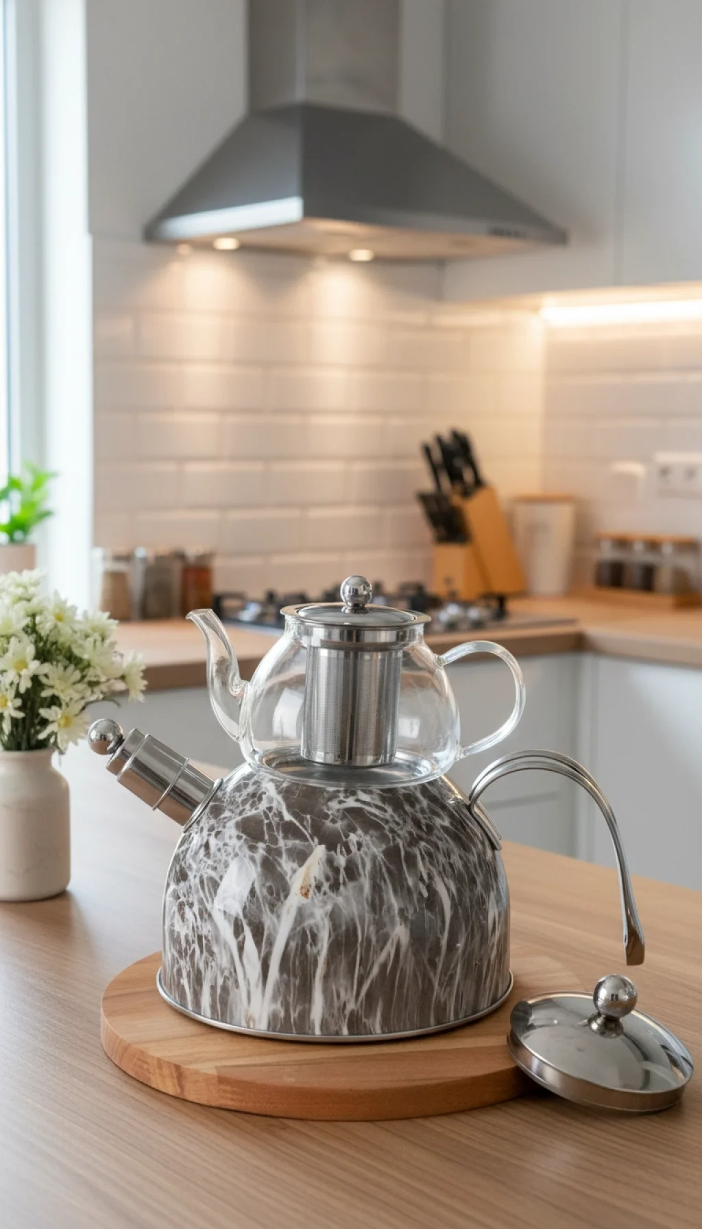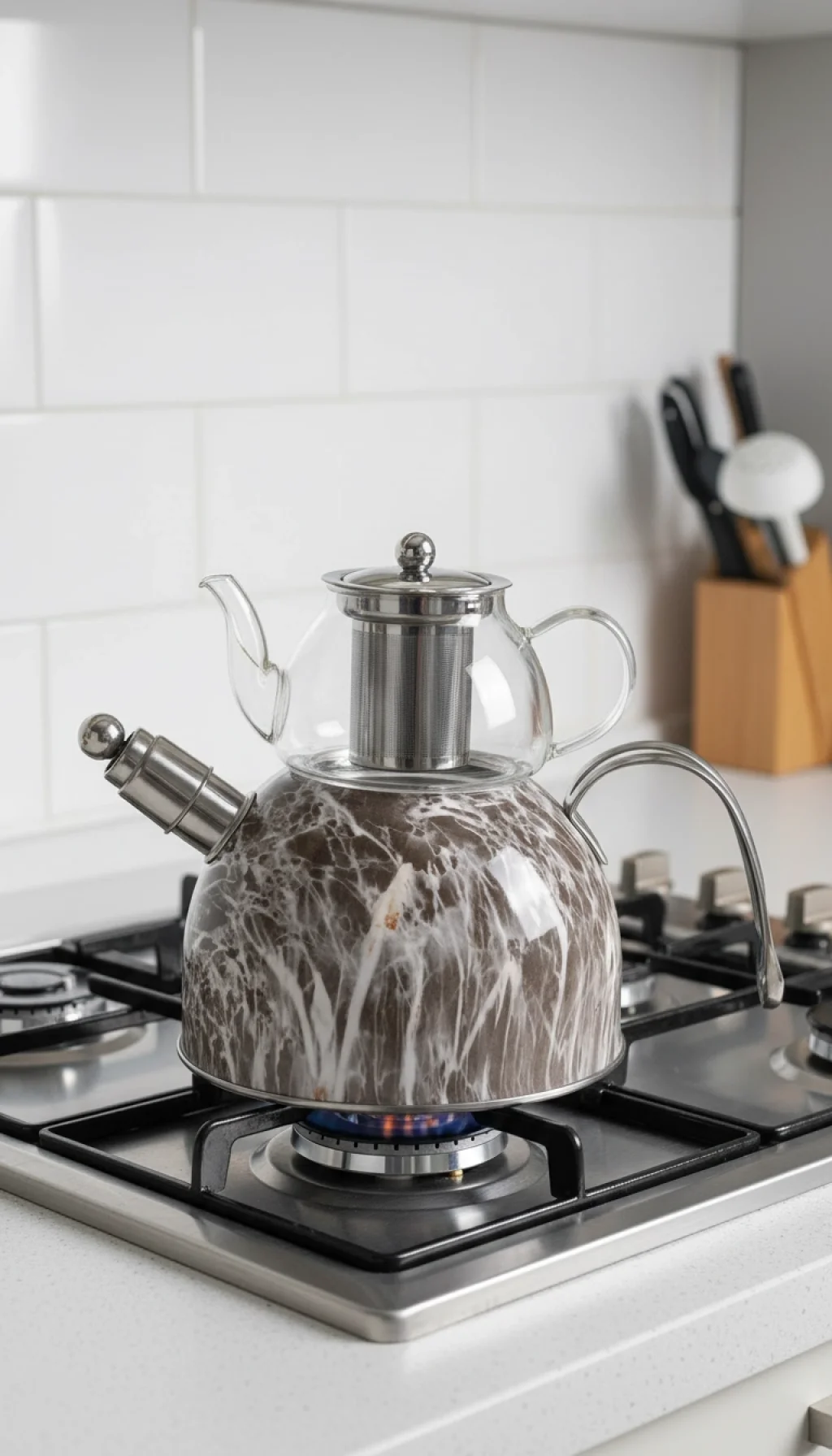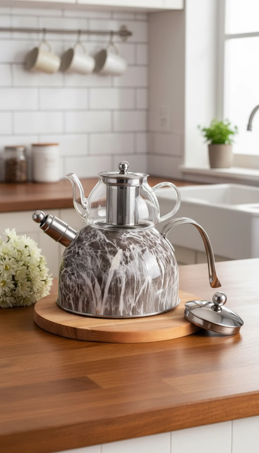 Geleneksel çay keyfini modern teknoloji ve estetik tasarımla buluşturun! Nişev imzalı Mermer Desenli Düdüklü Çaydanlık Takımı, mutfağınızın havasını değiştirirken çay demlemeyi her zamankinden daha pratik ve güvenli hale getiriyor.