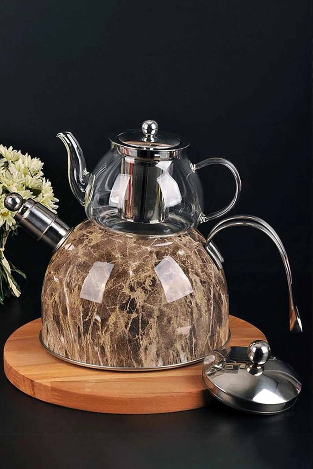 Dayanıklı çelik malzeme kullanımı, uzun ömürlü ve sağlam bir yapı sunar; Şık ve modern tasarımıyla mutfak dekorasyonunuza estetik bir dokunuş katar; Cam kapak sayesinde çay ve kahve hazırlarken kolayca görsel kontrol sağlar; Açık kahve rengi ile mutfak tezgahınıza sıcak ve davetkar bir atmosfer yaratır;