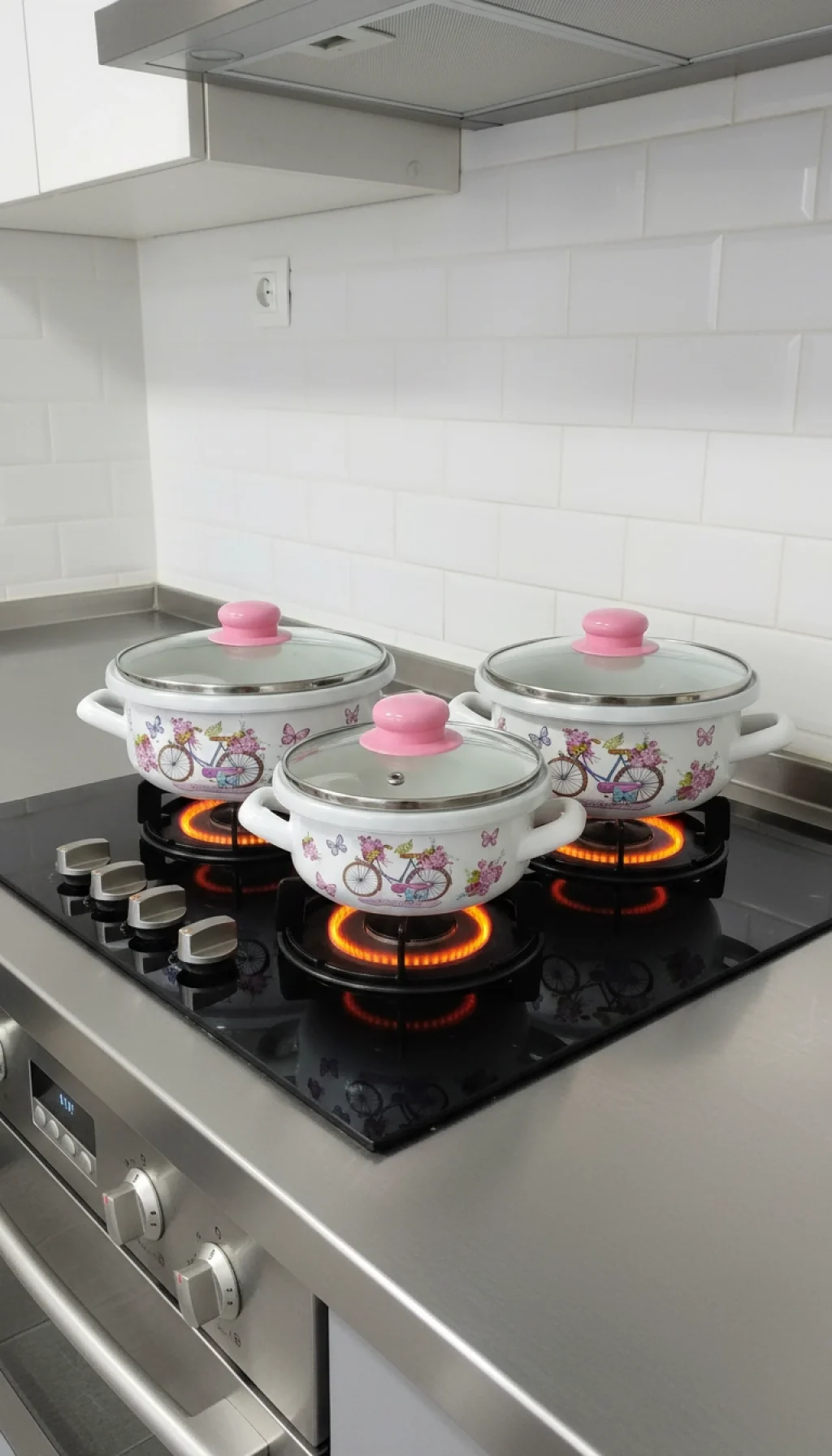 italyan tasarım Emaye Mini Tencere Seti – 12cm 900ml 3-Renk Alana 1 adet-bedava , Lüks ve Çevre Dostu