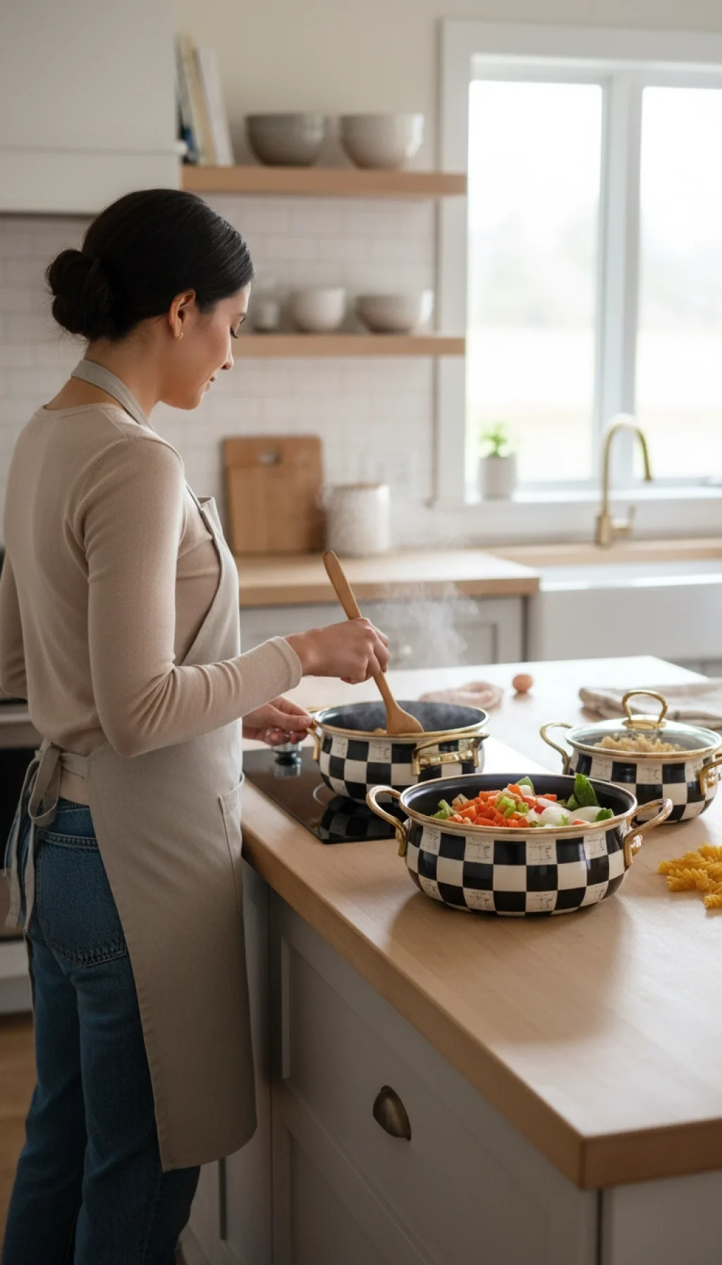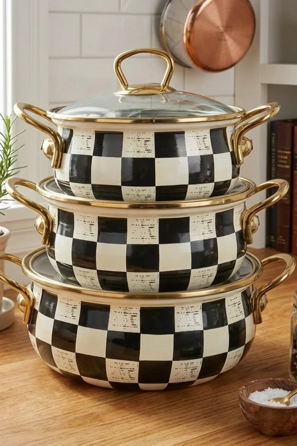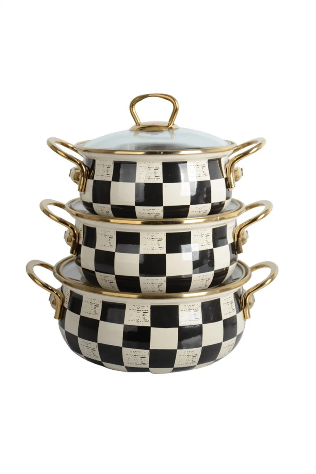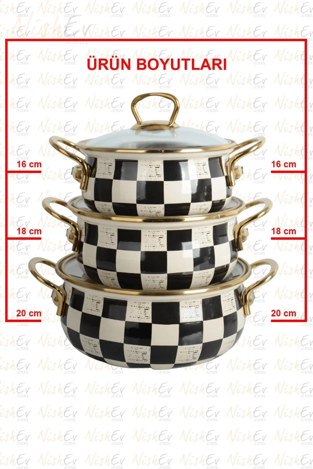 İtalyan Dama kalitesiyle üretilen Nishev Elite Class emaye tencere seti, 16 cm, 18 cm ve 20 cm boyutlarında üçlü paket olarak sunulmaktadır. Mutfağınıza şıklık katarken, her tencereyi uzun süre saklayacak dayanıklı emaye kaplamasıyla öne çıkar.