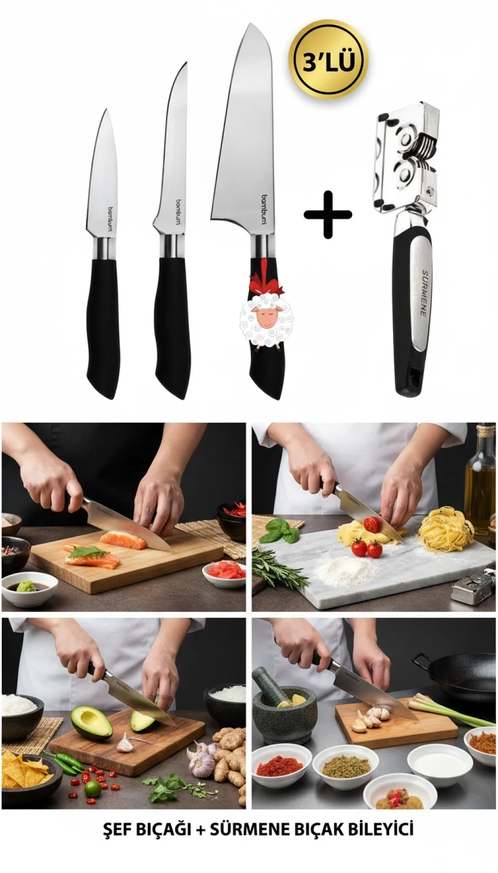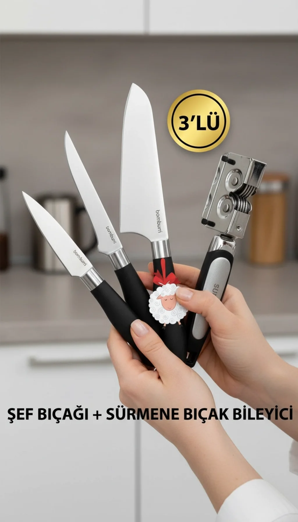 Mutfakta hız, keskinlik ve dayanıklılık arayanlar için tasarlanan Nishev Mastercut 3'lü Şef Bıçağı Seti, şimdi orijinal Sürmene Bıçak Bileyici hediyesiyle sizlerle! Kurban Bayramı hazırlıklarınızda veya günlük mutfak işlerinizde en büyük yardımcınız olacak bu set, ergonomik tasarımı ve üstün kesme performansıyla fark yaratır.