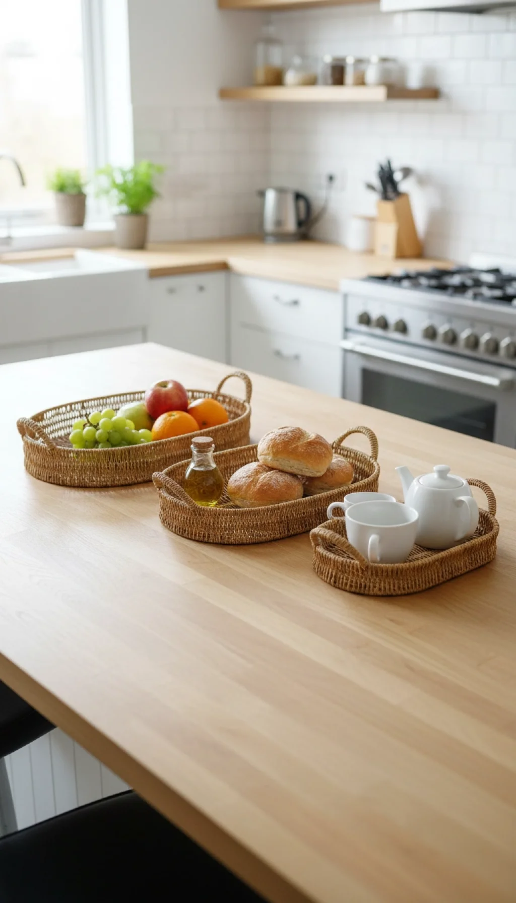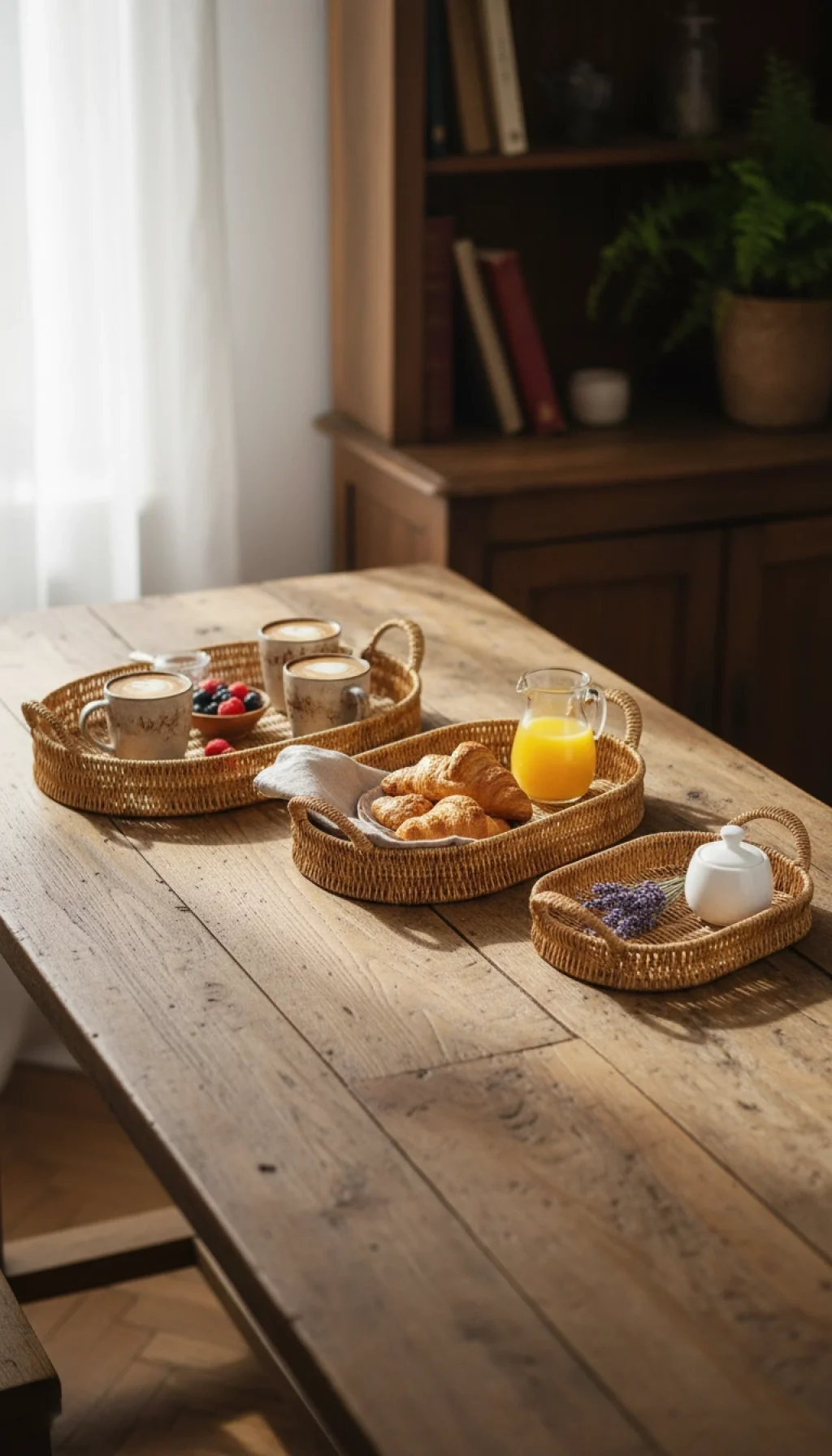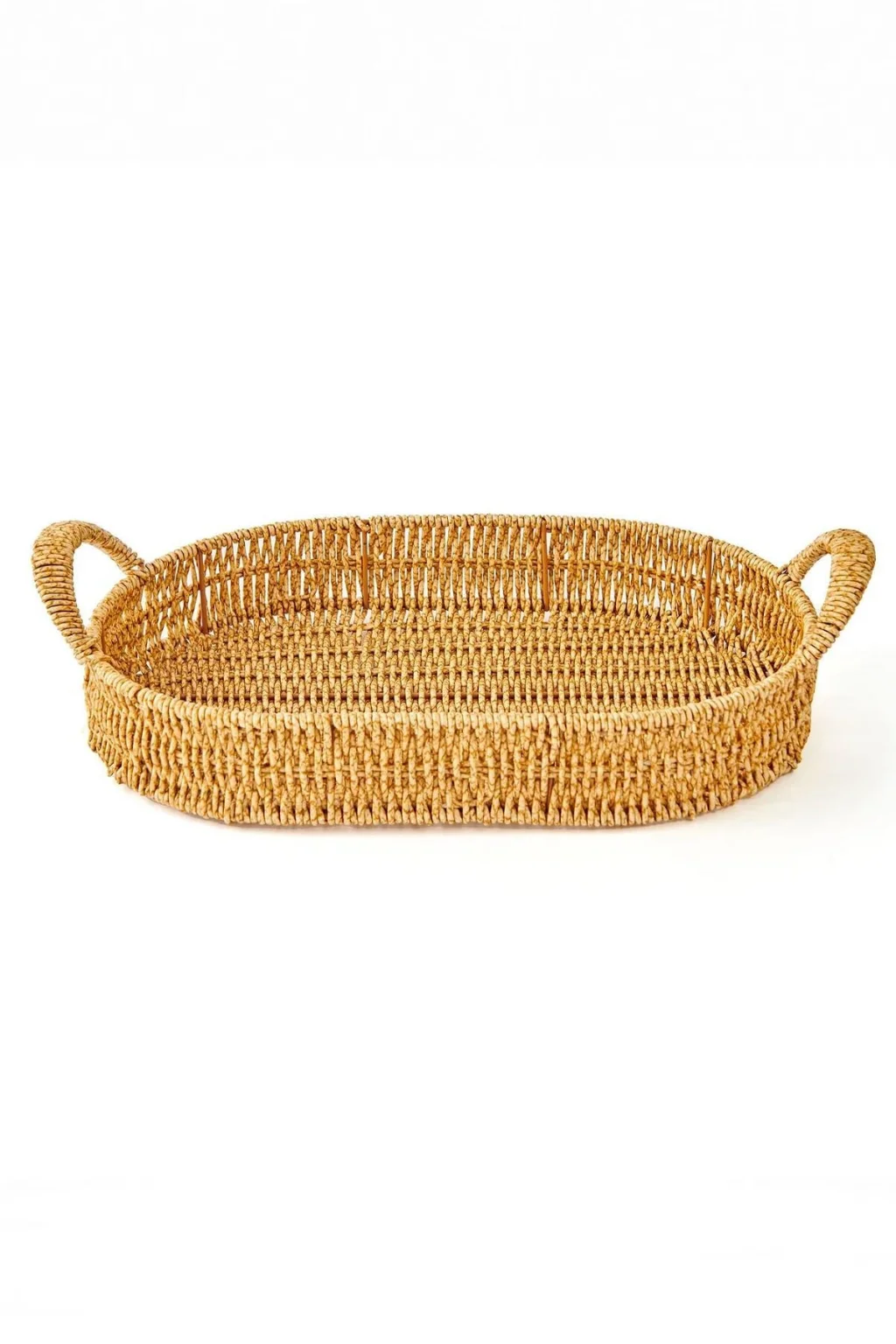 Bu lüks oval hasır tepsi seti, hem şıklığı hem de fonksiyonelliği bir araya getirerek mutfak ve organizasyon ihtiyaçlarınızı en üst seviyeye taşır.