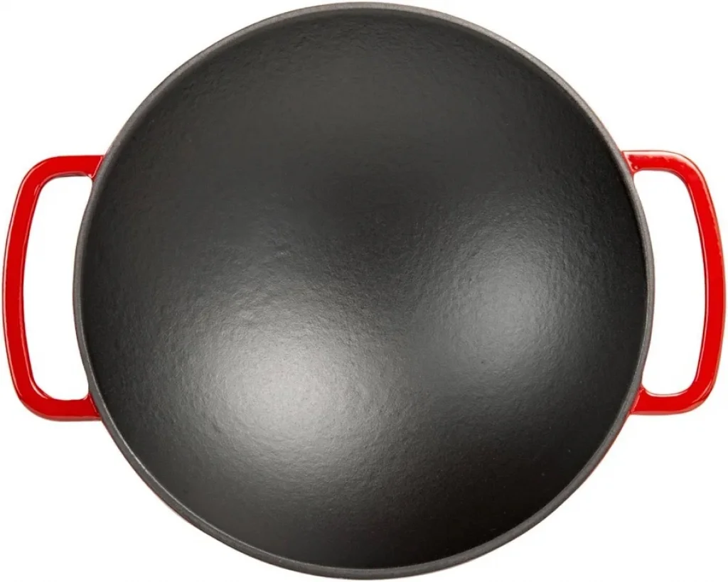 Eşit Isı Dağılımı: Demir dökümün doğası gereği ısı tüm yüzeye eşit yayılır. Bu sayede mühürleme ve yüksek ateşte hızlı pişirme (stir-fry) işlemlerinde mükemmel sonuçlar alırsınız.