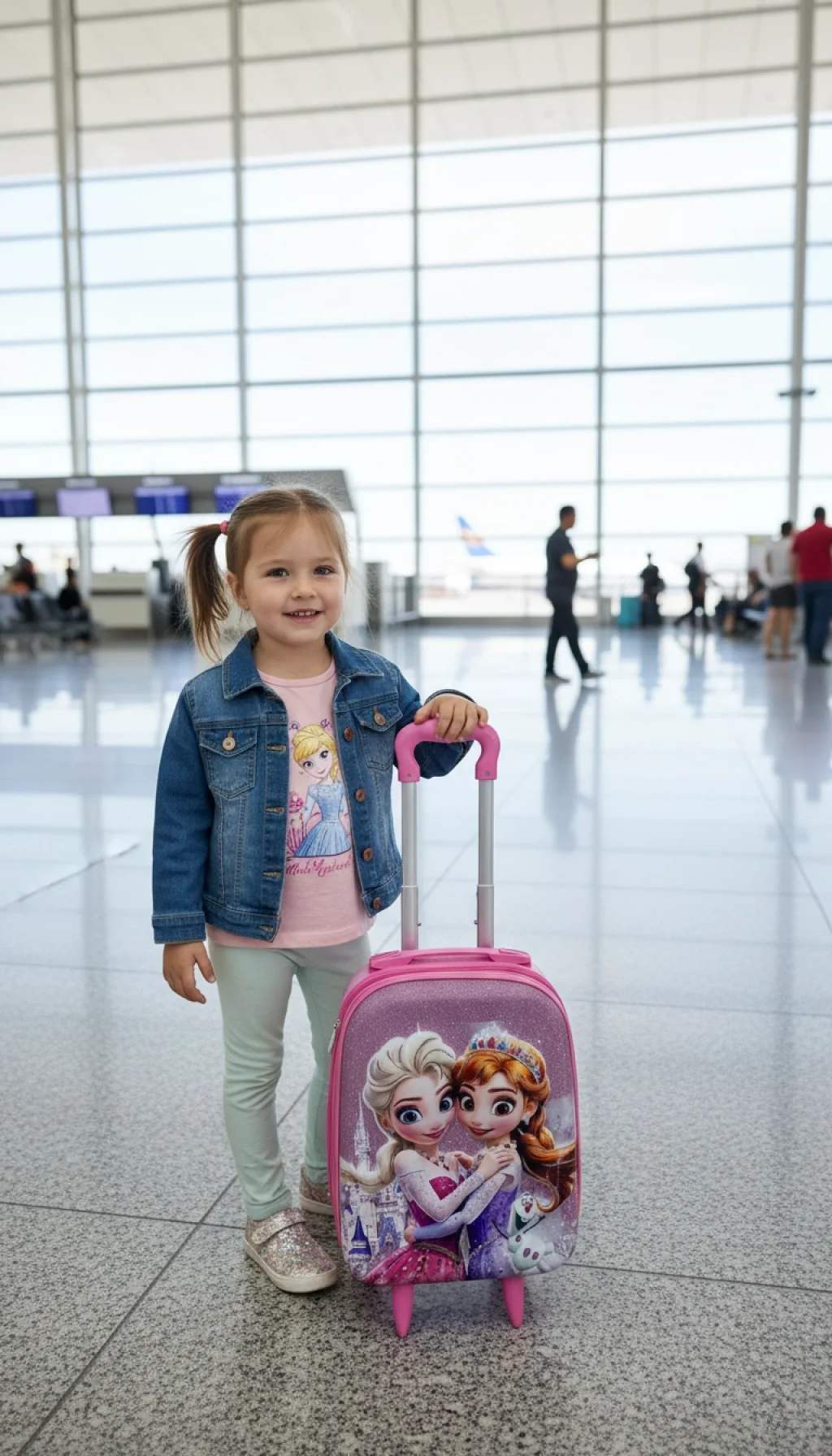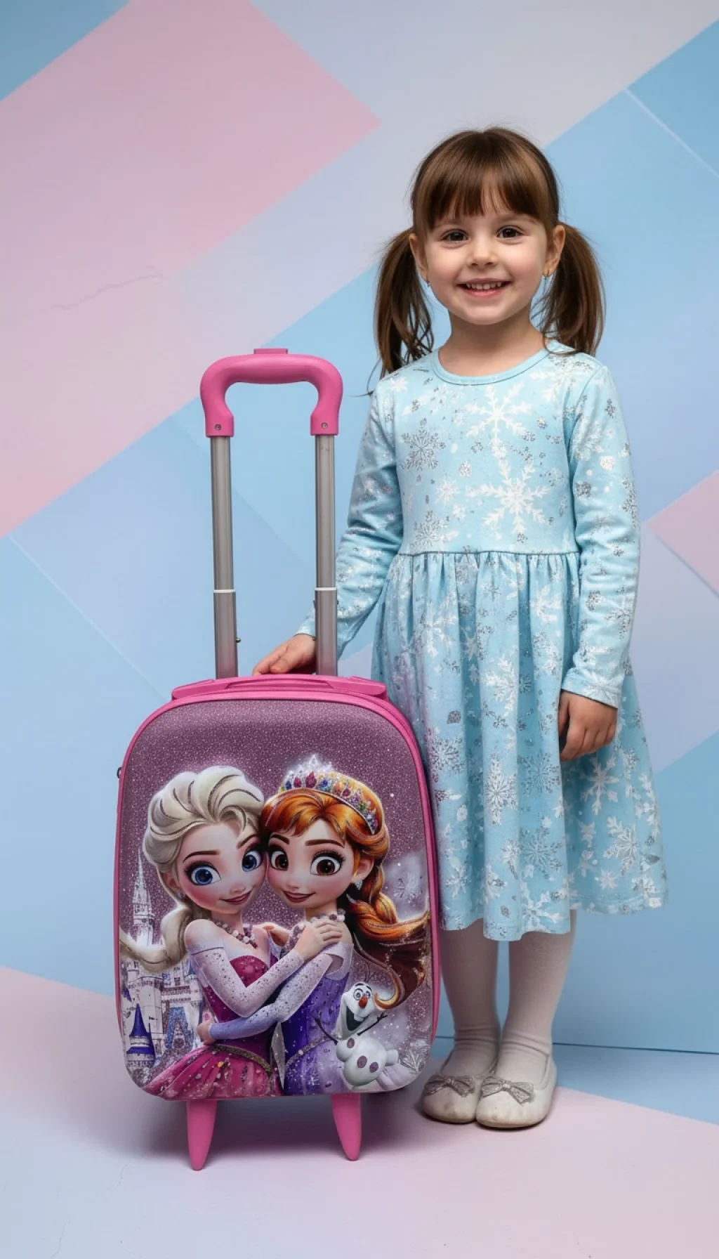 Çocuğunuzun seyahatlerini masalsı bir maceraya dönüştürün! Nishev dokunuşuyla hazırlanan bu Karlar Ülkesi temalı pembe çocuk valizi, ikonik prenses karakterleri ve neşeli kardan adam Olaf figürüyle miniklerin kalbini fethediyor. Işıltılı simli yapısı, her adımda çocukların enerjisini yansıtıyor.