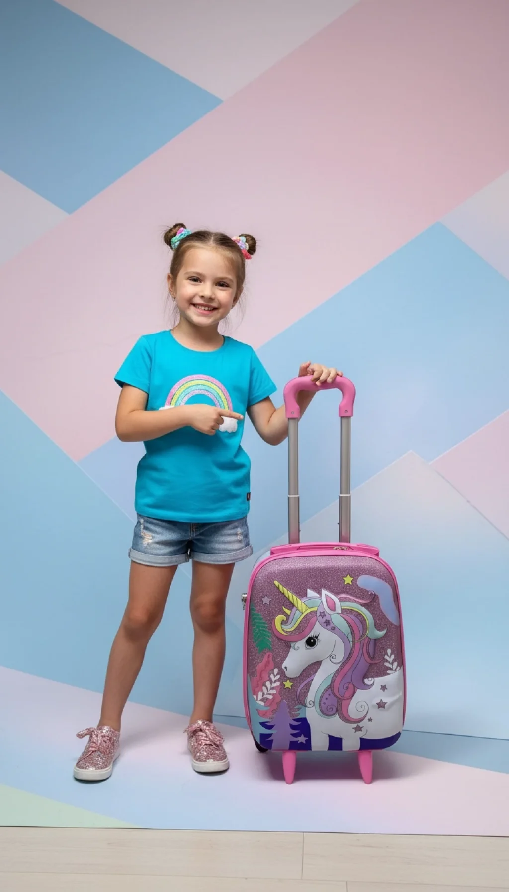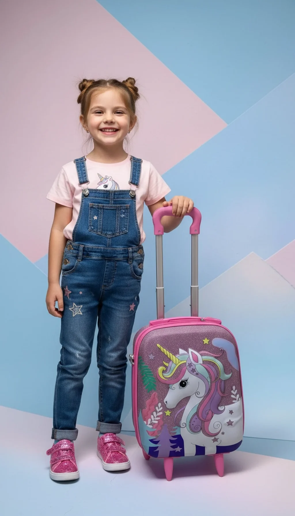 Çocukların hayal dünyasındaki en sevilen kahraman Unicorn, şimdi en güvenli yol arkadaşı oluyor! Nishev kalitesiyle tasarlanan bu Unicorn karakterli pembe çocuk valizi, ışıltılı simli dokusu ve rengarenk detaylarıyla seyahatleri bir masala dönüştürüyor.