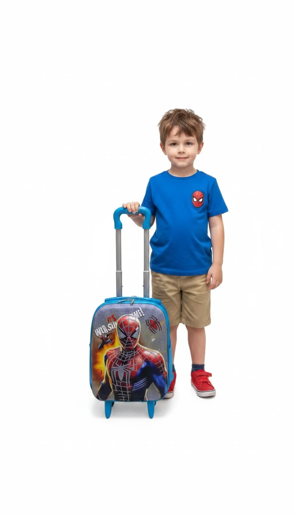 Dünyanın en sevilen süper kahramanı Örümcek Adam, şimdi çocuğunuzun seyahatlerine güç katıyor! Nishev koleksiyonunun bu dinamik parçası, hayranı erkek çocukları için hem bir oyun arkadaşı hem de mükemmel bir taşıma yardımcısıdır.