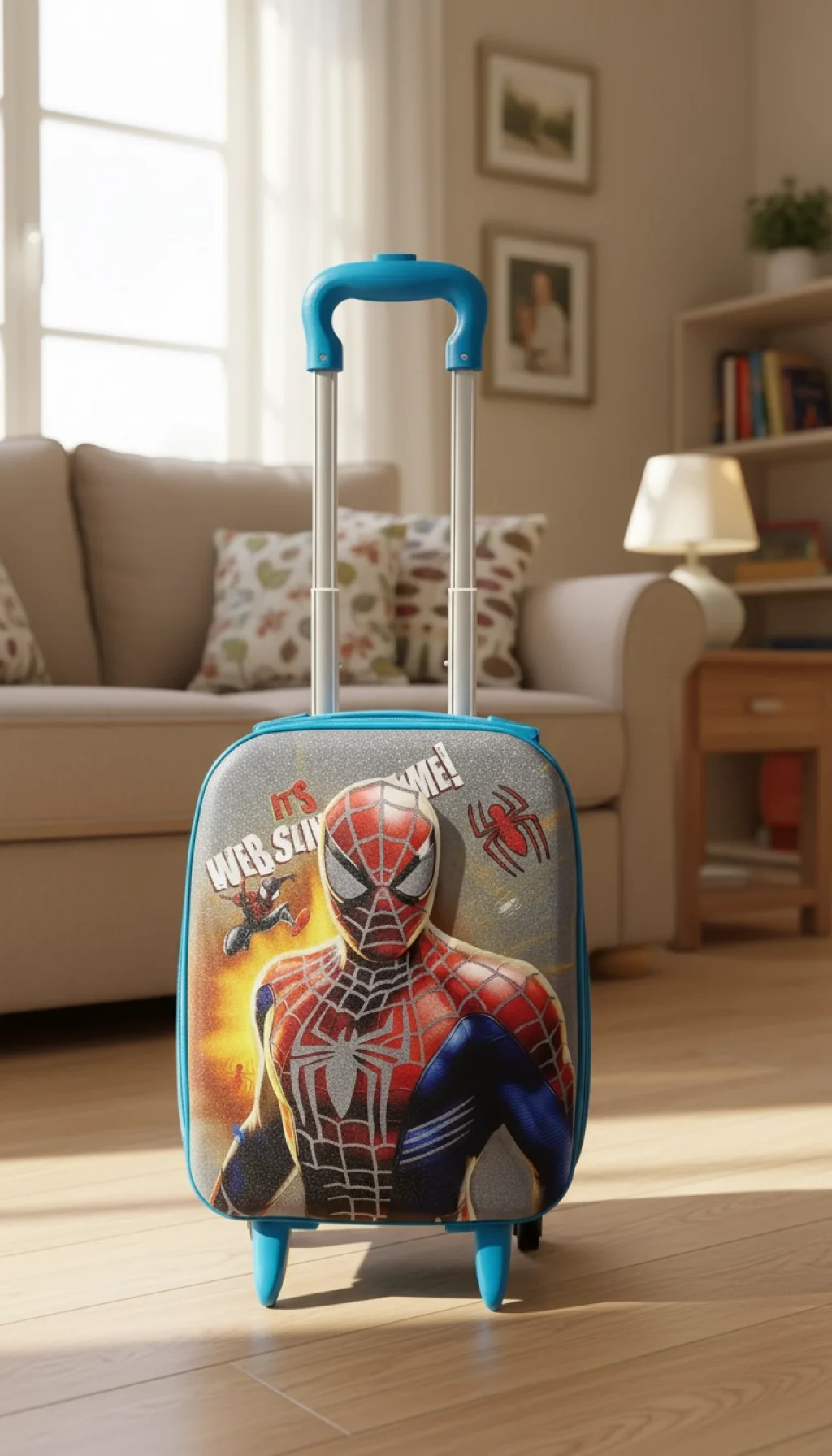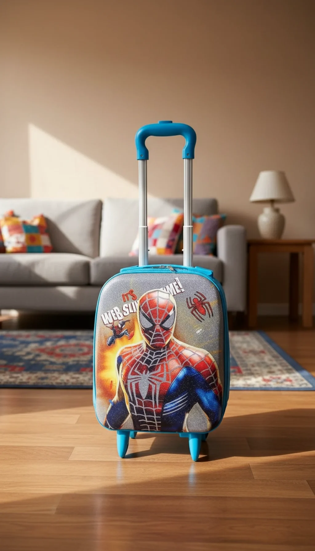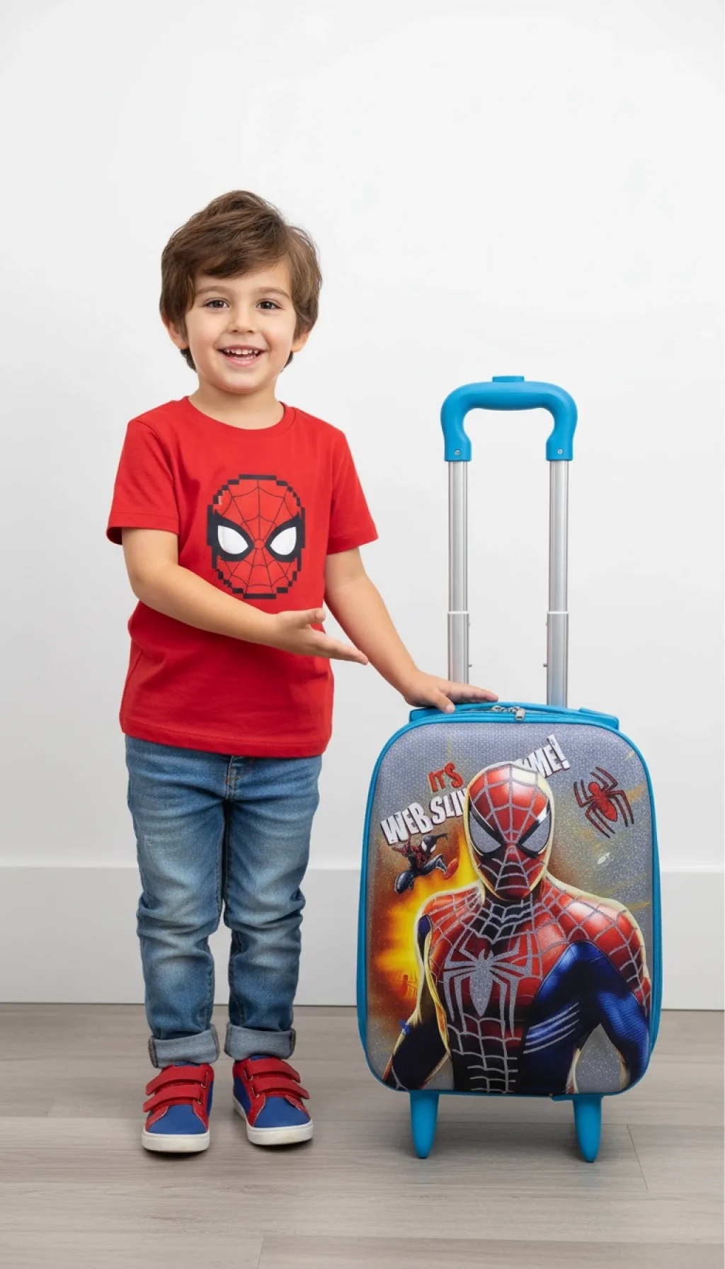Efsanevi Tasarım: Ikonik figürü ve "Web Slinging" temalı tasarımıyla çocukların hayal dünyasını seyahatlere taşır.