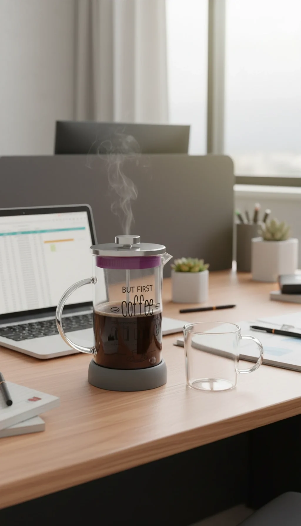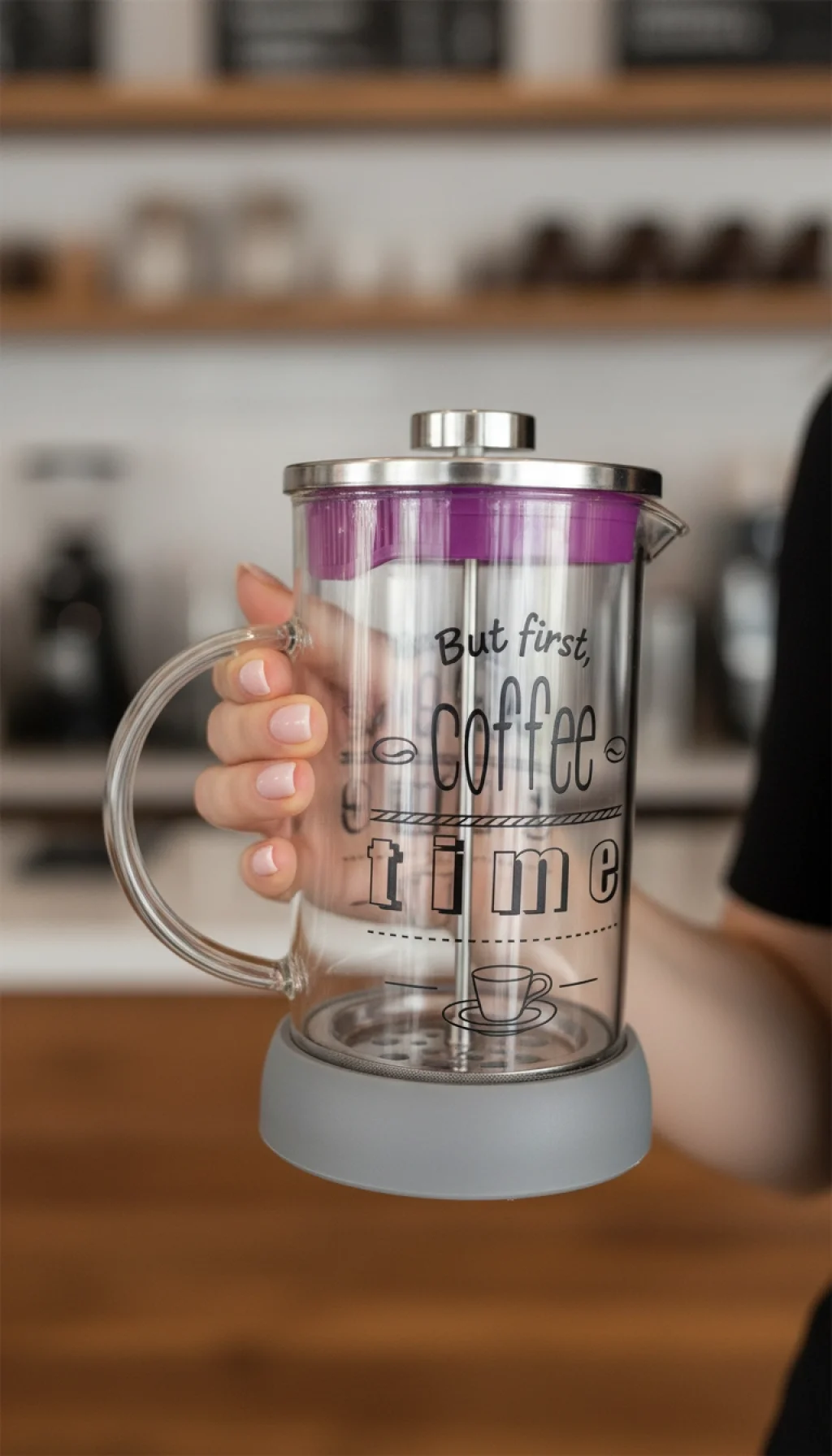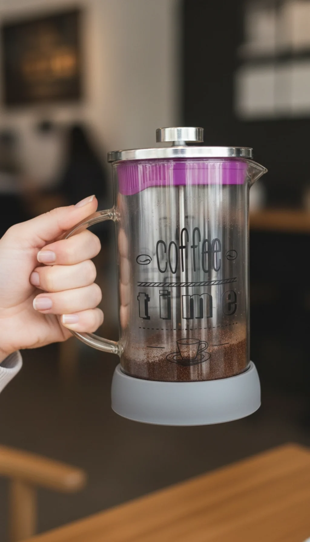 Yüksek Kaliteli Cam Gövde: Isıya dayanıklı borosilikat cam yapısı sayesinde içeceğinizin sıcaklığını korur ve en saf tadı almanızı sağlar.