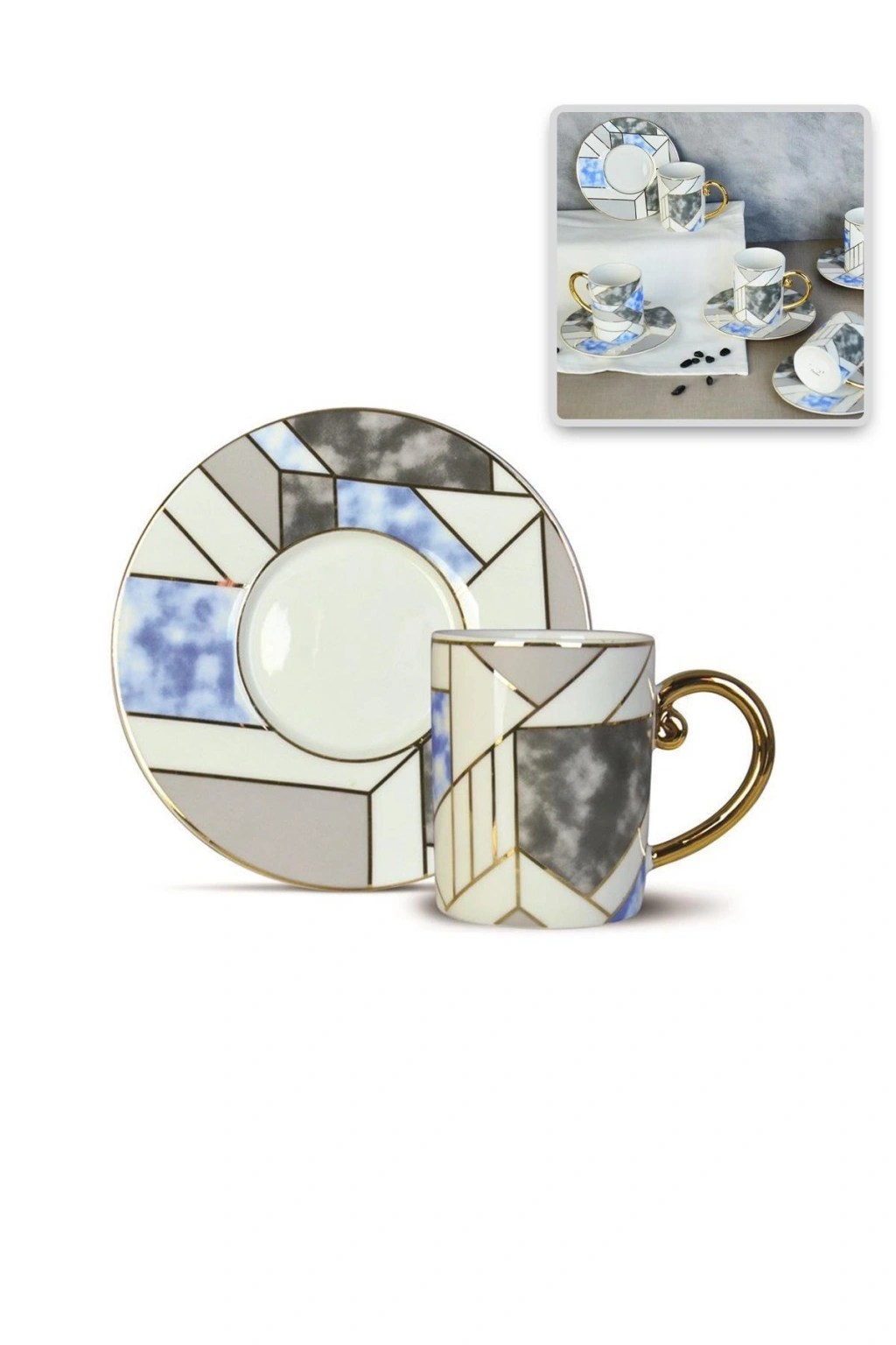 Zarif Claudie Desenli 6 Kişilik Porselen Fincan Takımı; Çay keyfinizi yeni bir seviyeye taşıyacak bu harika porselen fincan takımı ile özel anlarınıza şıklık katın.; Benzersiz deseniyle göz kamaştıran bu takım, 6 kişilik kapasitesiyle sevdiklerinizle bir araya gelmenin keyfini çıkarmanızı sağlar.; Özellikler:; Yüksek kaliteli porselen malzeme, uzun ömürlü kullanım sağlar.; Estetik desenler, sofra düzeninize zarafet katmada yardımcı olur.; 6 fincan ve 6 tabak içeren set, özel davetleriniz için idealdir.; Ergonomik tasarım, konforlu kavrama ve içim sunar.; Kolay temizlenir ve dayanıklılığıyla öne çıkar.; Her bir fincan takımı, özenle seçilmiş malzemelerle üretilmiş olup, şıklık ve işlevselliği bir araya getirir.; Bu takımı evinizdeki veya özel etkinliklerinizdeki sofralarda gururla sergileyin.; Şimdi sipariş vererek bu benzersiz fincan takımını koleksiyonunuza ekleyin!; Diğer ürün modellerimiz için profilimizi ziyaret edebilirsiniz.;
