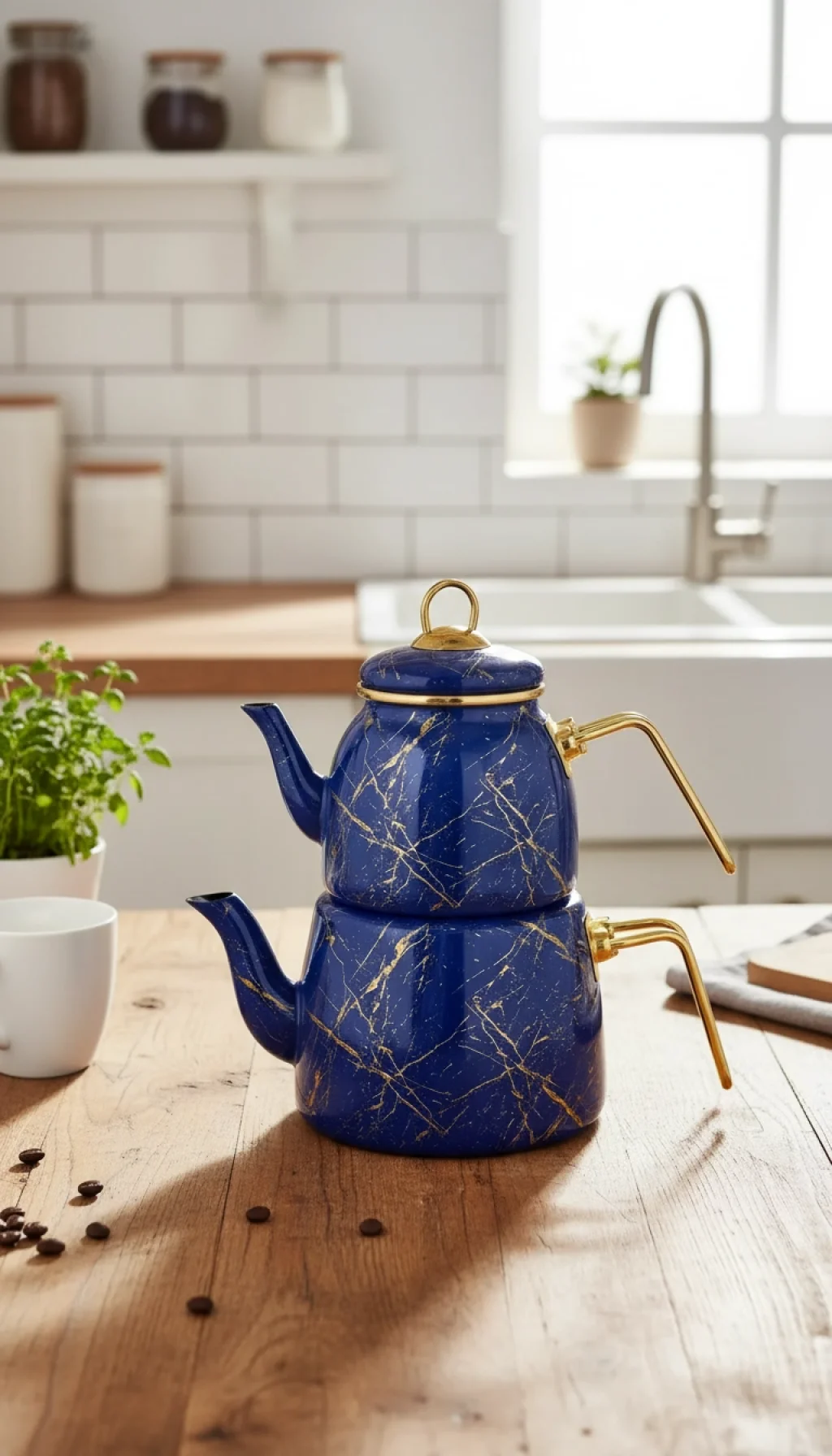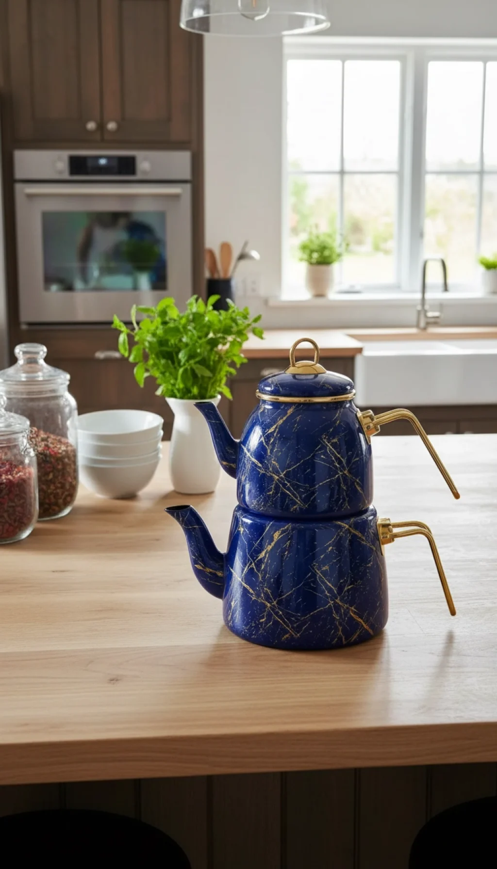 Protokol London markasının premium kalitesiyle üretilen bu çaydanlık takımı, şık mermer dokunuşuyla mutfak dekorasyonunuza lüks bir hava katar.