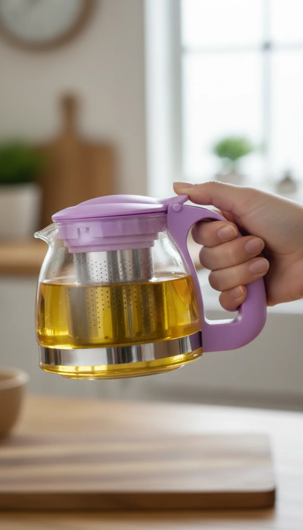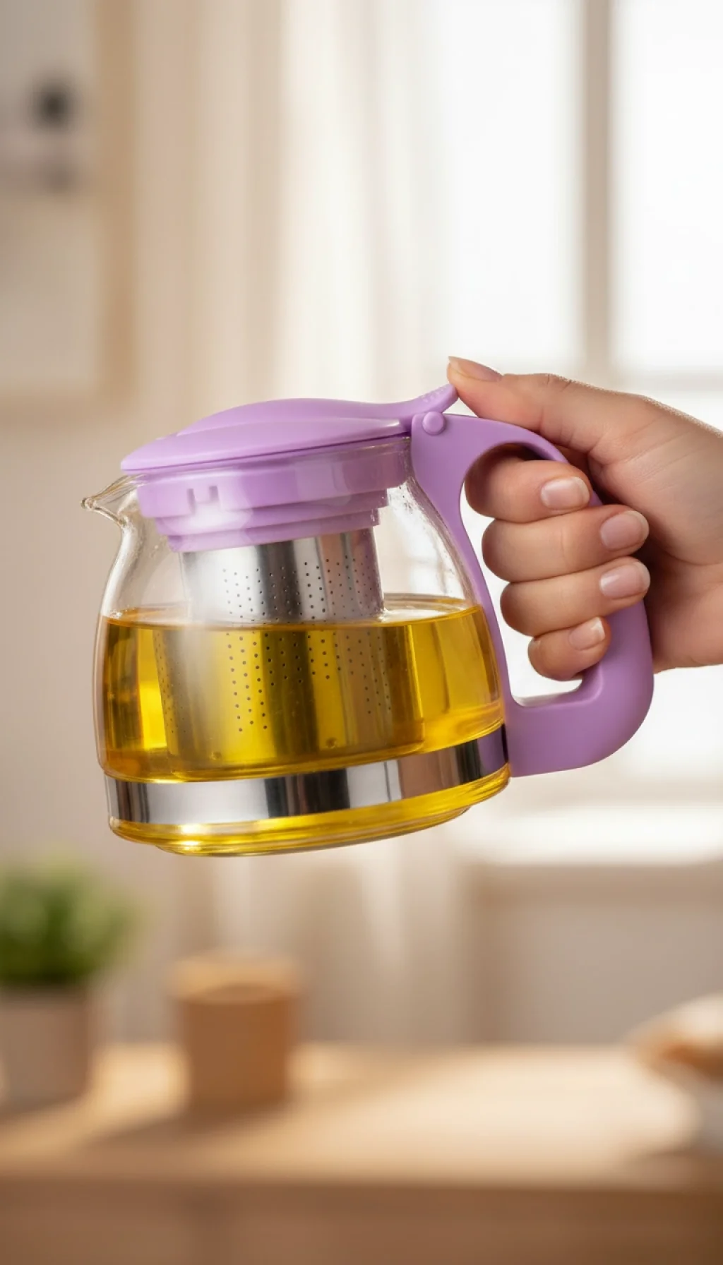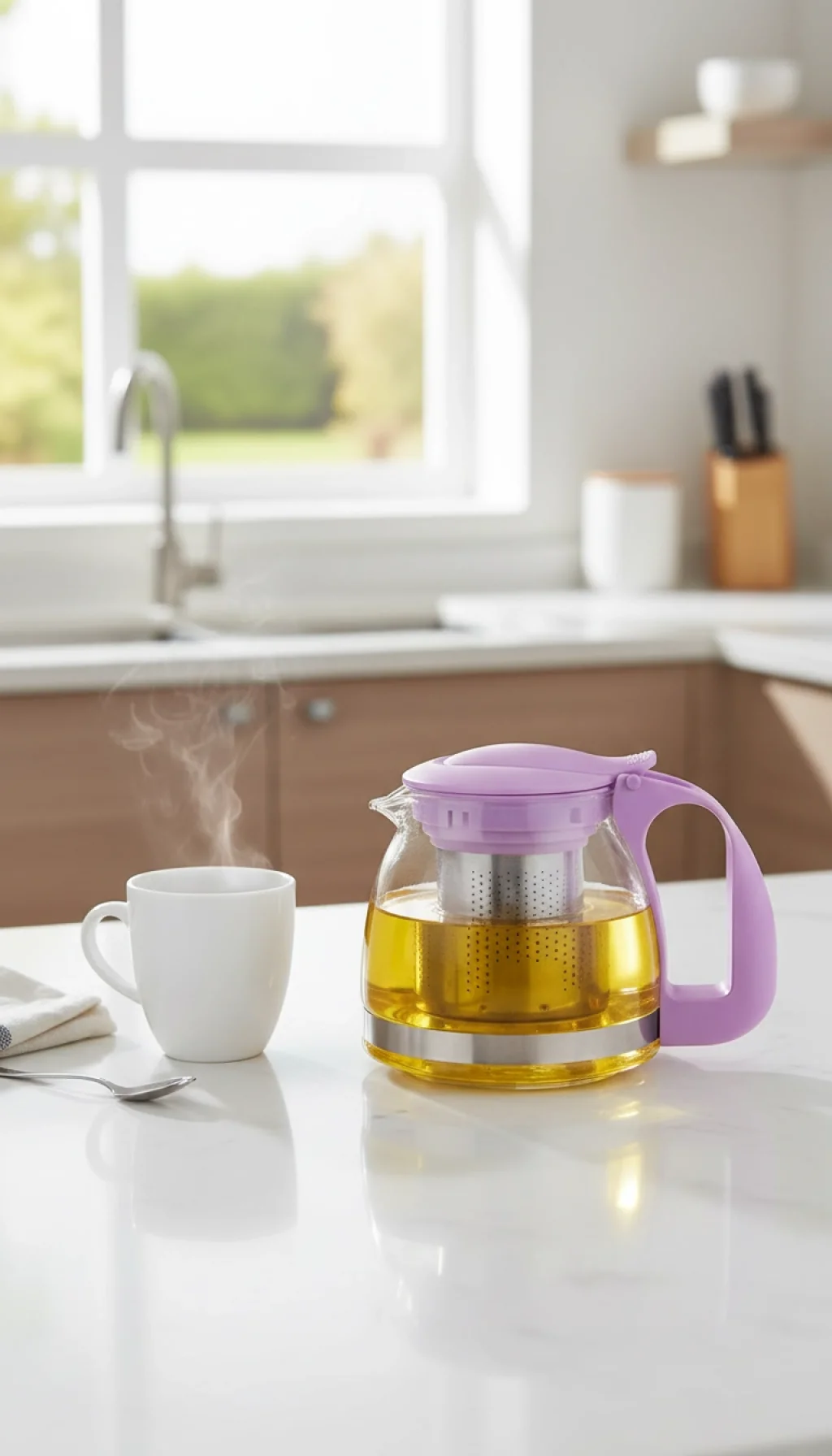 Kullanım Avantajı: Şeffaf cam gövde, bitki çaylarınızın demlenirken aldığı o eşsiz rengi görmenize olanak tanır. Morun şıklığı ise özellikle modern ve minimalist mutfak dekorasyonlarına mükemmel bir uyum sağlar.