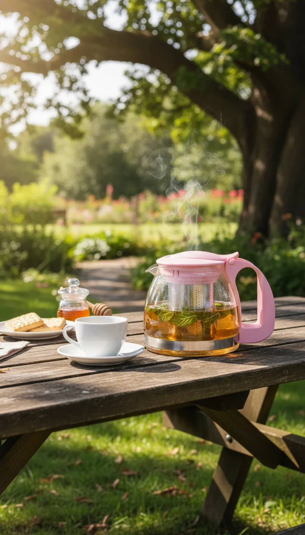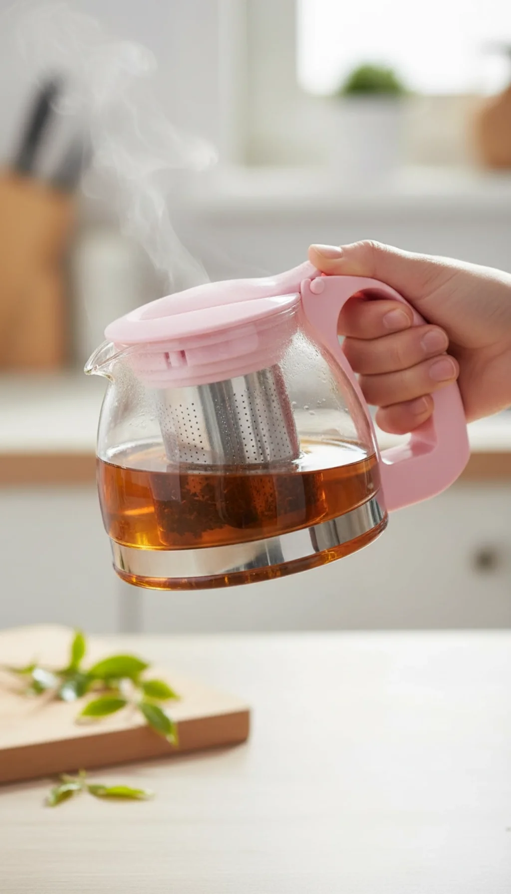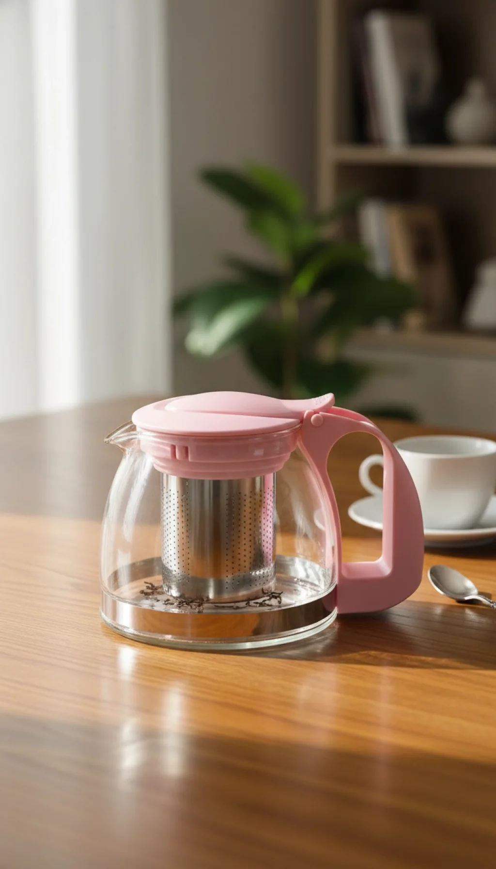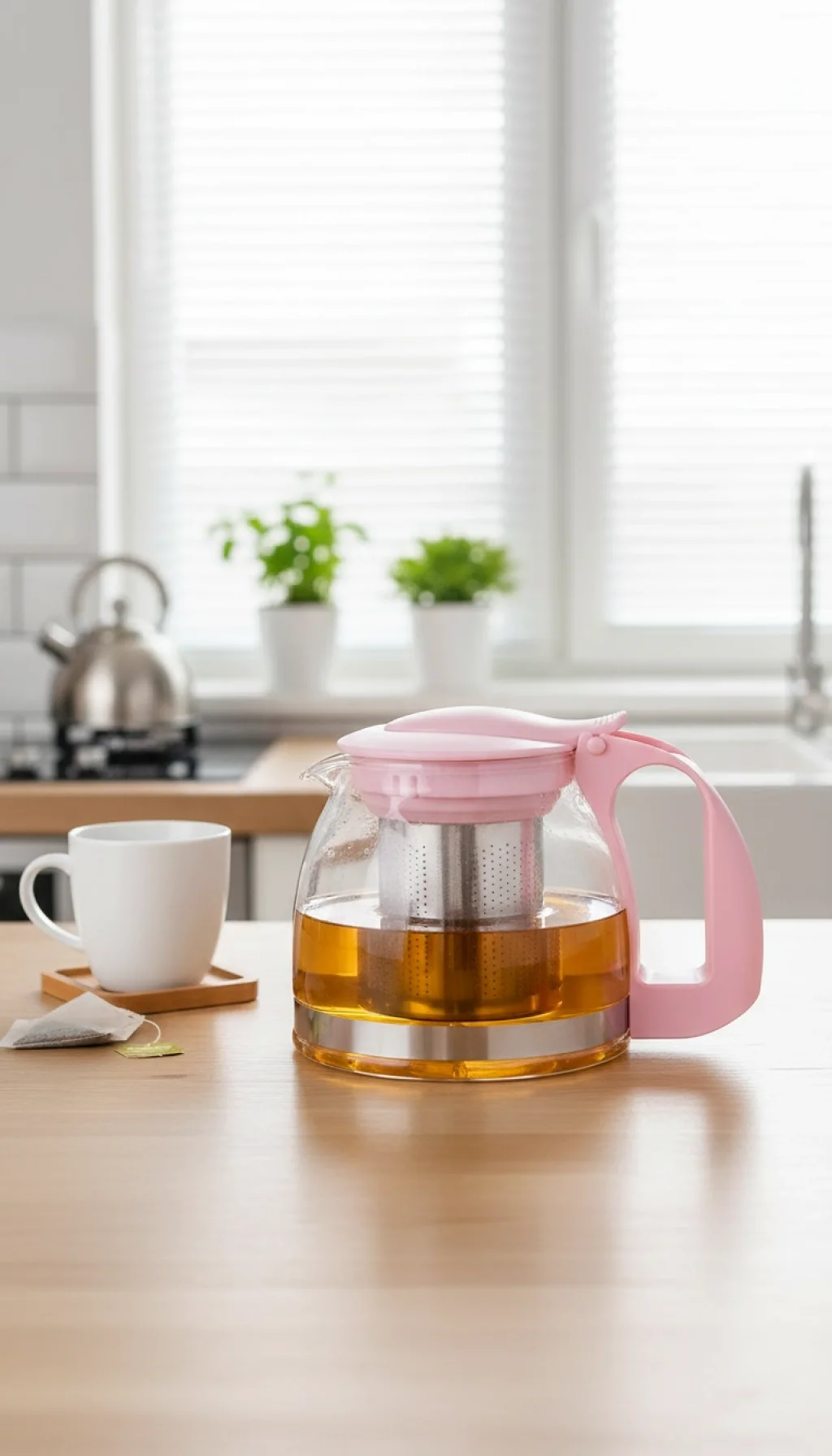 Çay saatlerinize neşe ve zarafet katmaya ne dersiniz? nishev.com koleksiyonunun en sevilen parçalarından biri olan pembe detaylı cam demlik, hem fonksiyonelliği hem de pastel tonuyla mutfağınızın yıldızı olmaya aday.