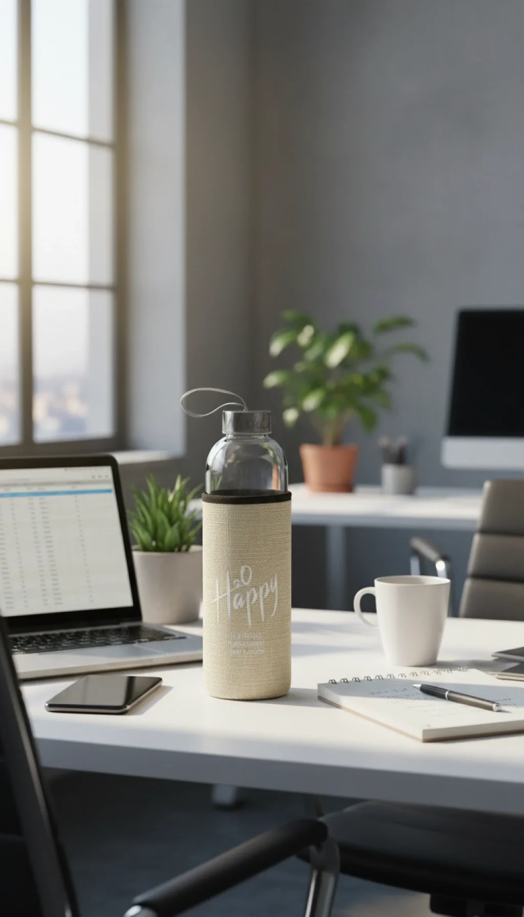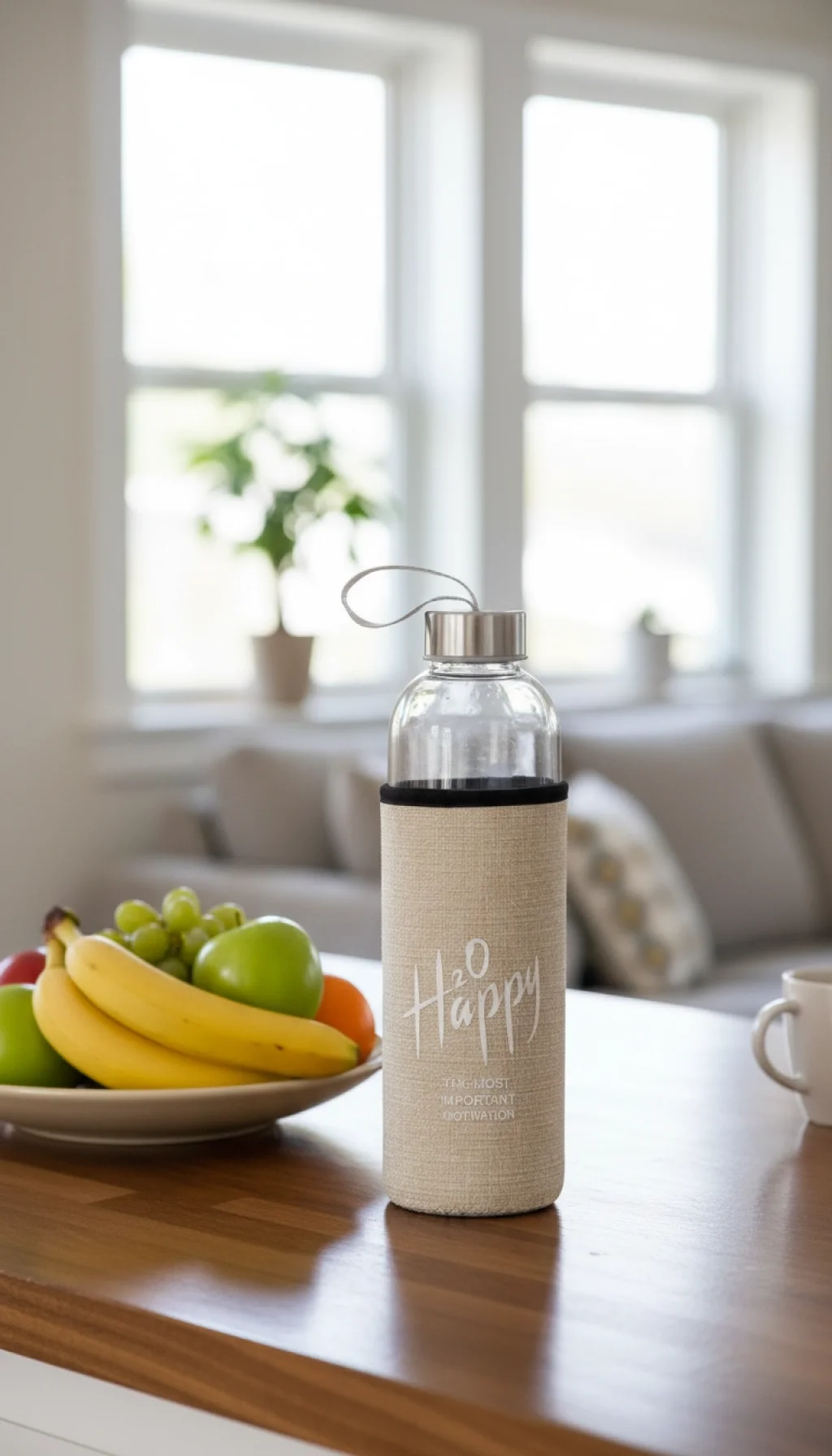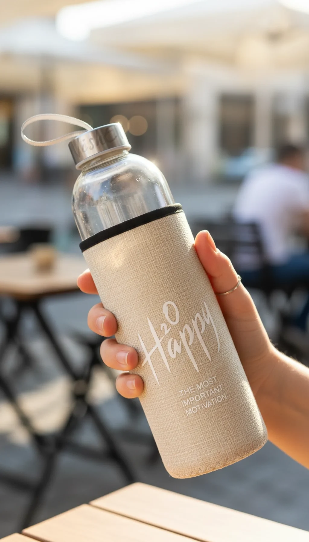 “H2O Happy: The Most Important Motivation” – Bu şık matara, gün içindeki en büyük motivasyon kaynağınız olan suyu size en saf haliyle sunar.