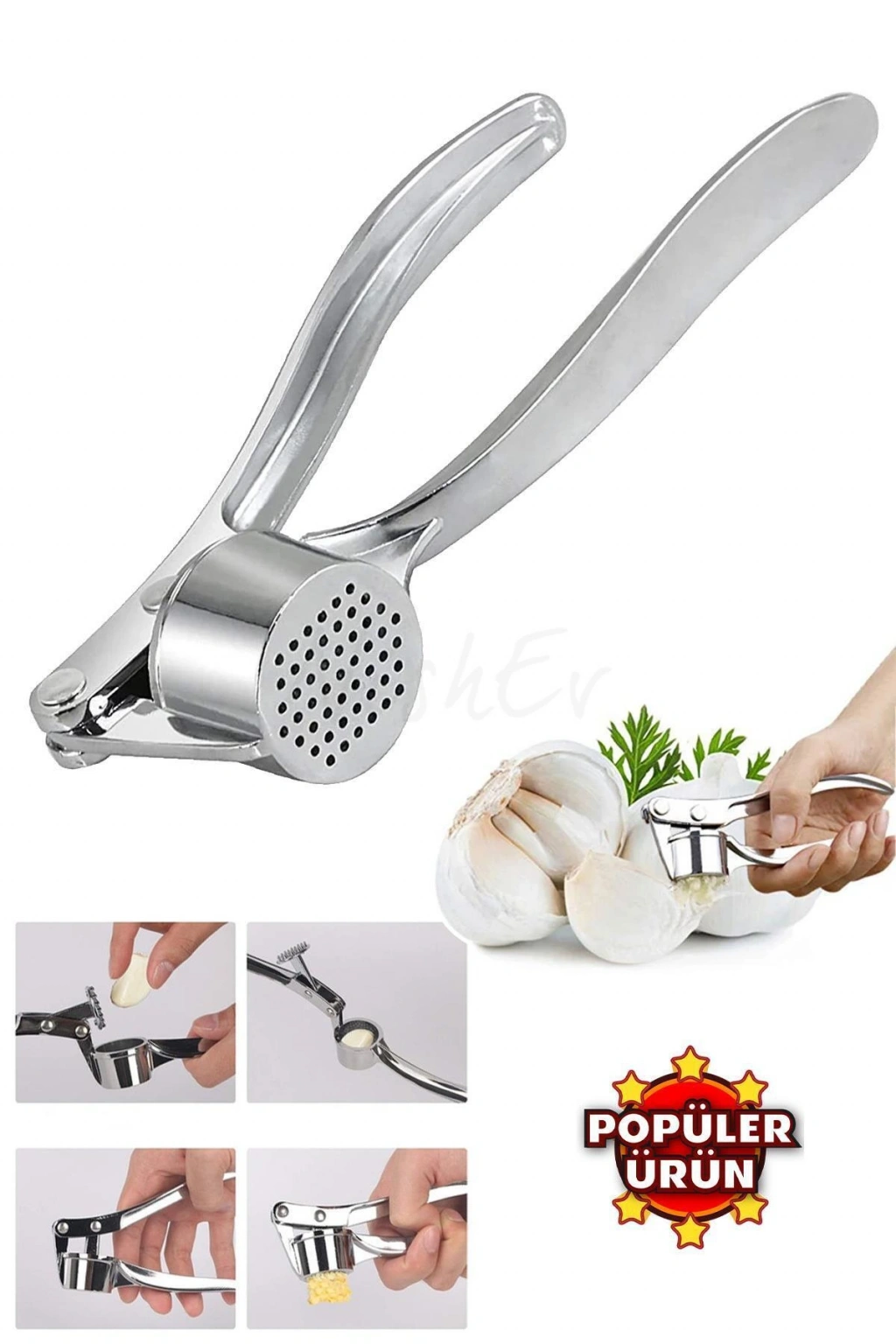 Sarımsak Ezici / Paslanmaz Çelik Sarımsak Ezeceği - Sarımsak Sıkacağı Ergonomik Tasarım.; Elleriniz İçin Rahat Ve Pürüzsüzdür.; Paslanmaz Çelikten Yapılmış, Güçlü Bir Yapıya Sahiptir Ve Kolay Temizlenir, Sadece Su Altında Durulayın Veya Bulaşık Makinesinde Yıkayınız.; Verimli Delik Düzeni Ezilmiş Sarımsak Miktarını Maksimuma Çıkarır.; Sadece Birkaç Adımda İhtiyacınız Olan Sarımsağı Elde Edebilirsiniz.; Temizlik İçin, Kullandıktan Hemen Sonra Sarımsak Eziciyi Durulamanızı Öneririz.; Uzunluk: 15.5 cm Diğer ürünlerimiz için profilimizi ziyaret edebilirsiniz.;