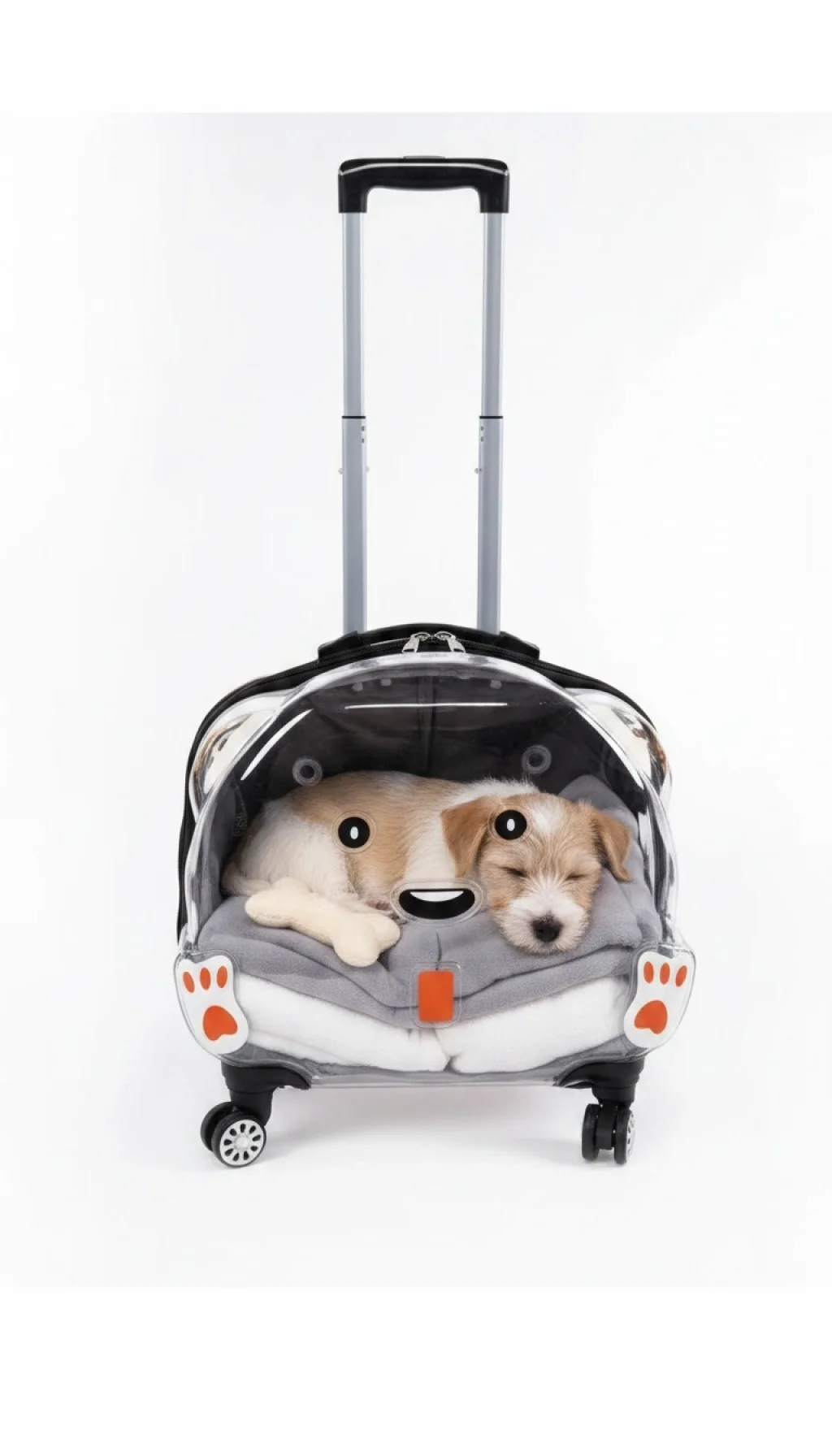 Şeffaf Tekerlekli & Çekçekli Taşıma Valizi ile Evcil Dostunuza Lüks Konfor