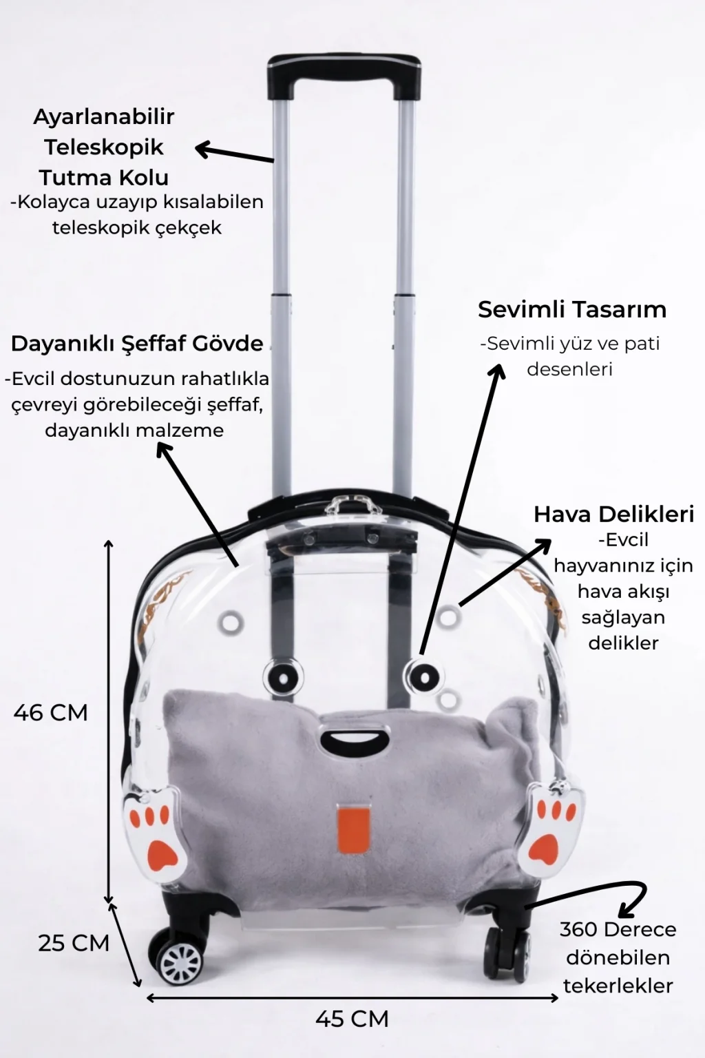 Evcil dostlarınızın rahatlığı ve sizin konforunuz için tasarlanmış büyük model taşıma valizi, şeffaf malzemesi sayesinde hepsi gözünüzün önünde.