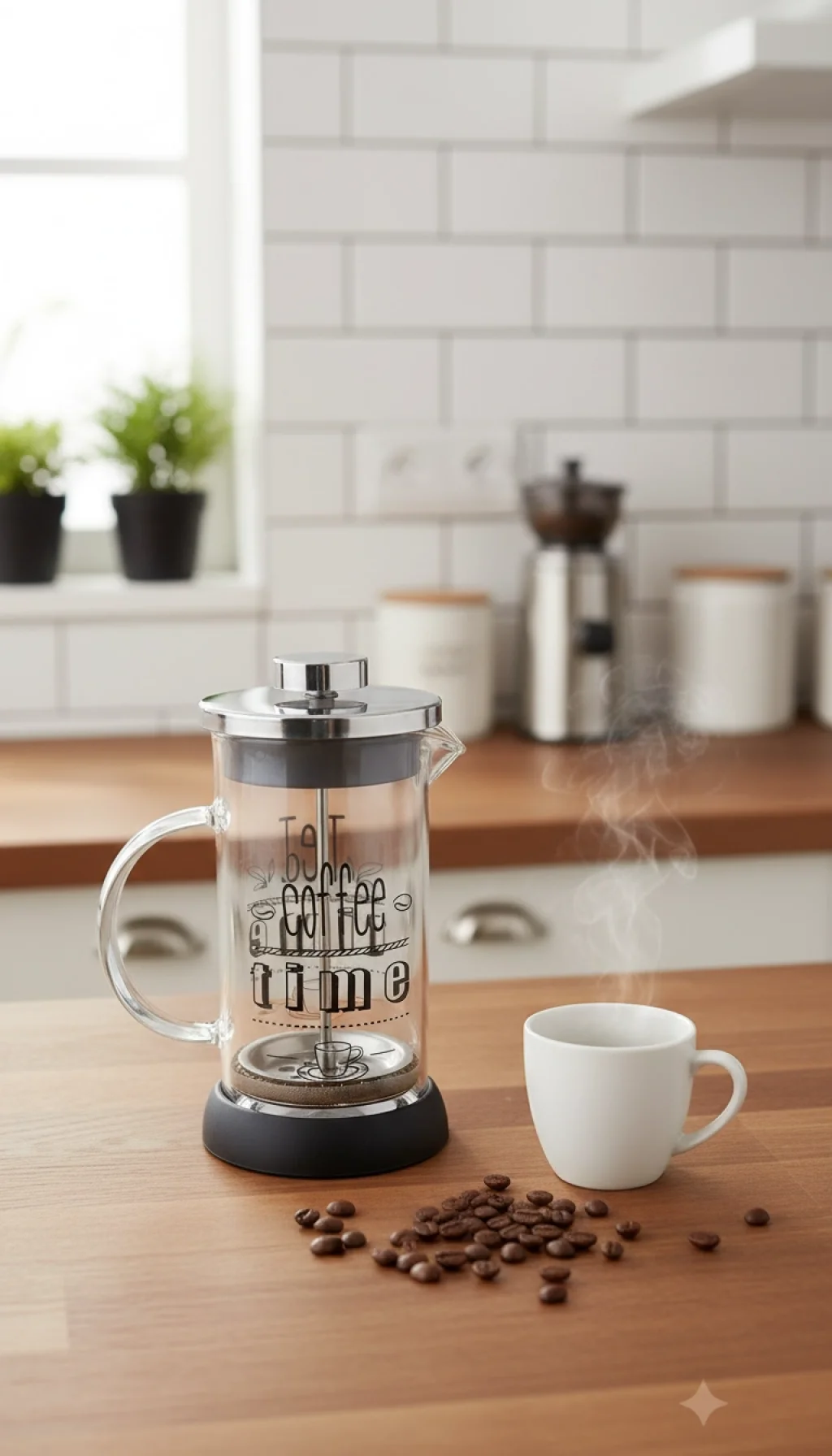 Kahve ritüellerini bir sanat formuna dönüştürmek isteyenler için nishev.com'dan vazgeçilmez bir parça: 350 ml Siyah Tasarım French Press. Siyahın zamansız şıklığı ile camın zarafetini birleştiren bu demlik, mutfağınızın en dikkat çekici detaylarından biri olacak.