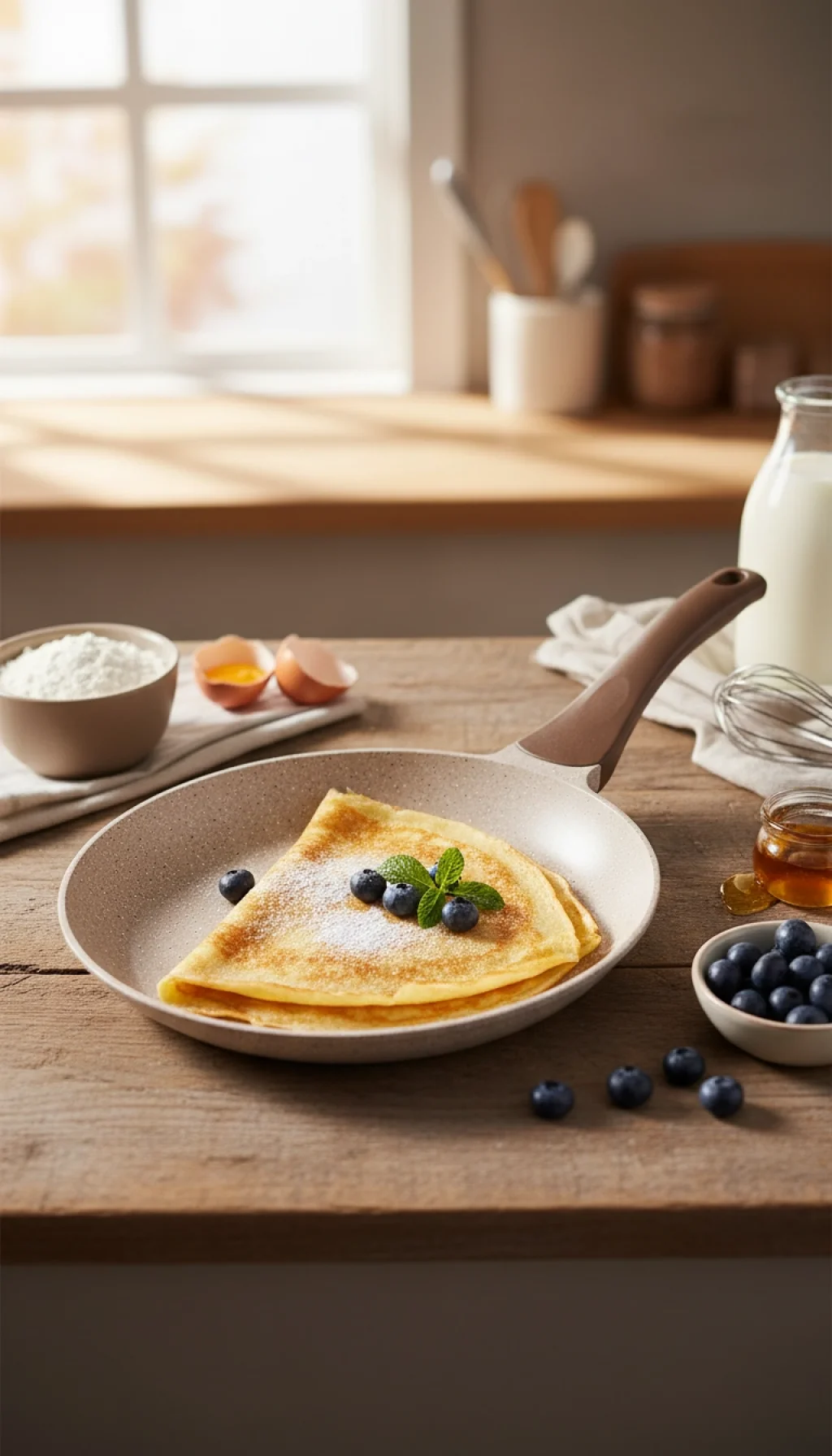 Kahvaltı Sofralarının Yıldızı: ThermoAD 26 cm Granit Döküm Krep Tava - Vizon