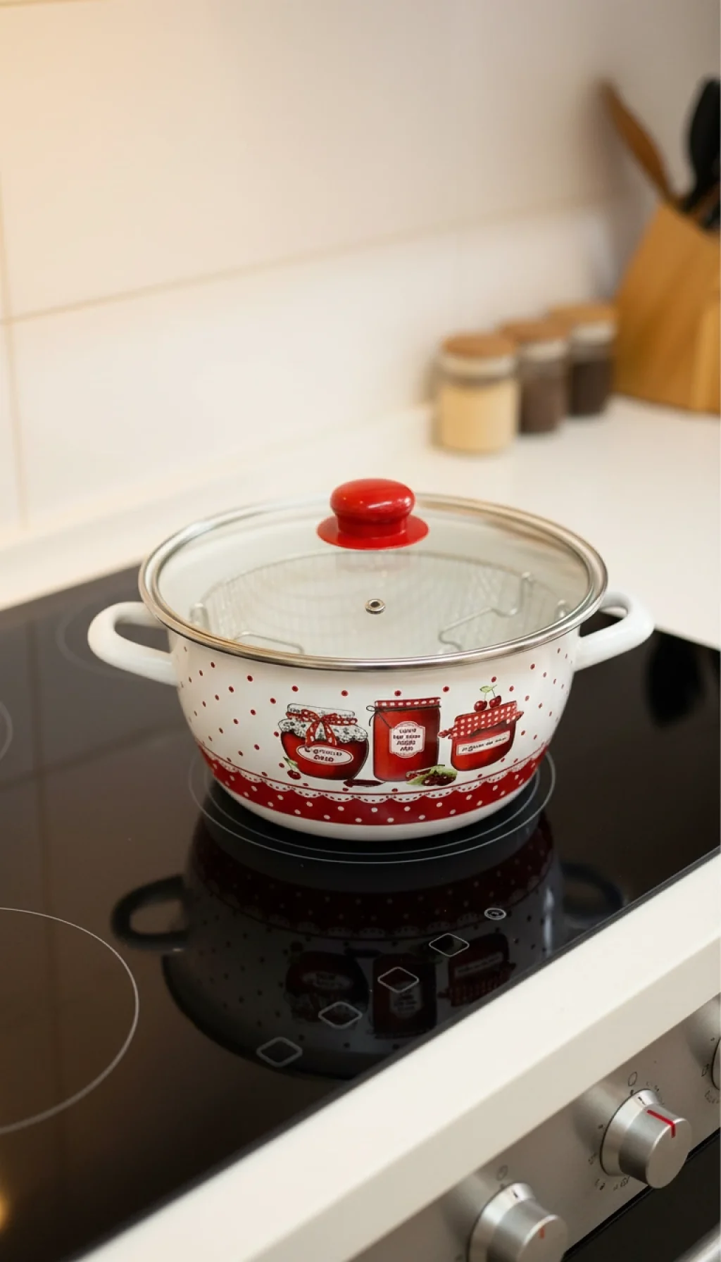 Nishev Protocol London Kırmızı Reçel Serisi Emaye Kızartma Tenceresi, şık ve işlevsel bir mutfak ürünüdür; İşte bu tencere hakkında bazı özellikler: Boyut ve Kapasite: Bu tencere 22 cm çapında ve geniş bir iç hacme sahiptir; Yemekleri rahatça pişirebilirsiniz; Emaye Kaplama: İç ve dış yüzeyi emaye kaplama ile kaplıdır; Emaye, dayanıklı ve yapışmaz bir yüzey sağlar; Aynı zamanda temizliği de kolaylaştırır; Kırmızı Renk: Bu serinin özelliği, canlı kırmızı rengidir; Mutfağınıza enerji ve sıcaklık katar; Kullanım Alanı: Kızartma, soteleme, su kaynatma gibi farklı amaçlarla kullanabilirsiniz;