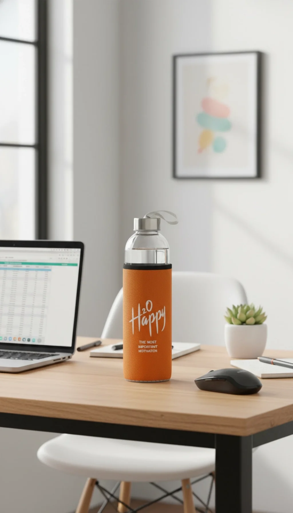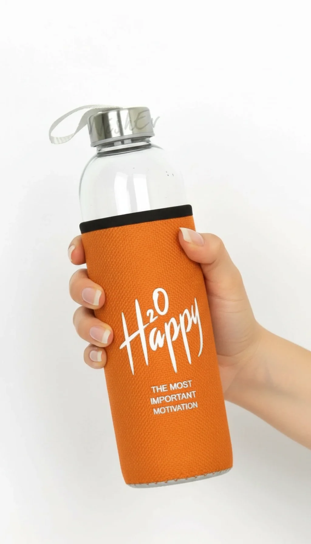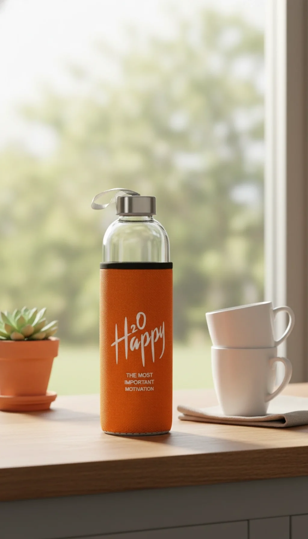 Canlı ve Enerjik Tasarım: Turuncu kılıf üzerindeki "H2O Happy" baskısı, gün boyu size su içmeniz gerektiğini hatırlatan şık bir motivasyon kaynağıdır.