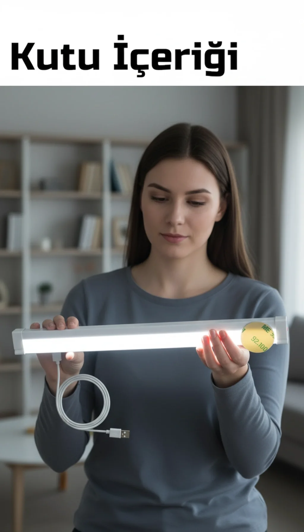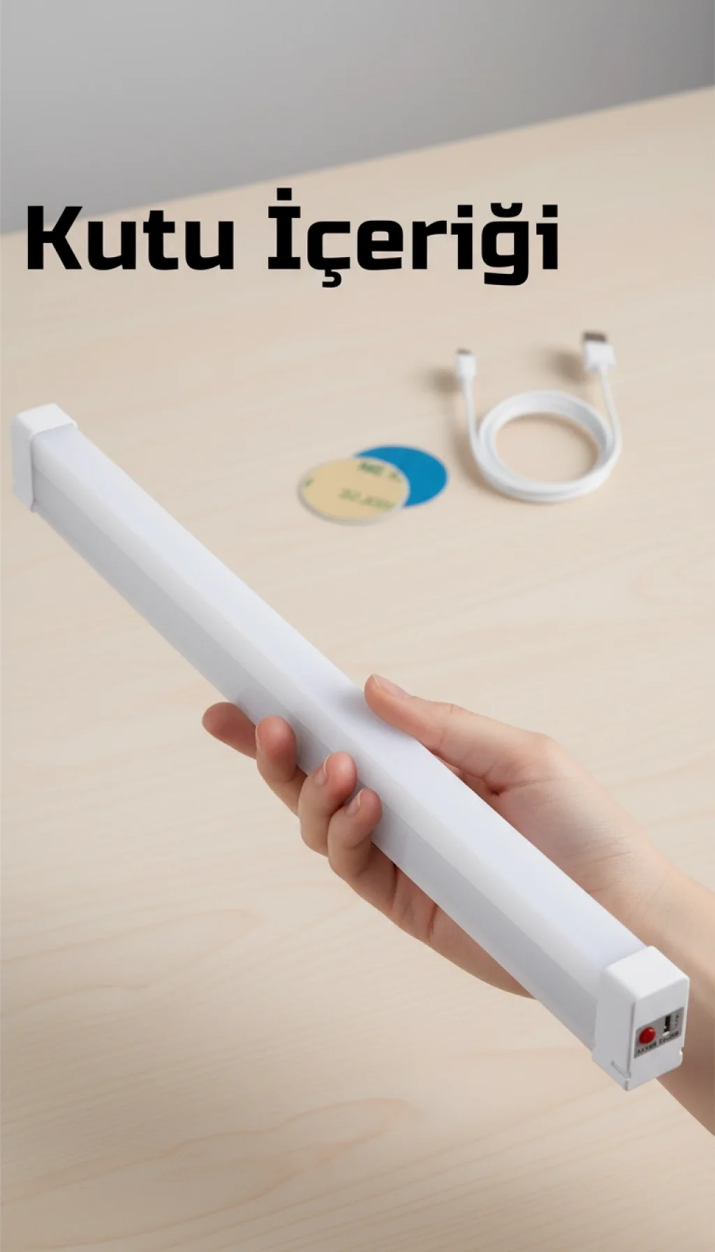 Kutu İçeriği: 1 x 52 cm LED Işıldak, 1 x USB Şarj Kablosu, 2 x Yapışkanlı Sabitleme Aparatı.