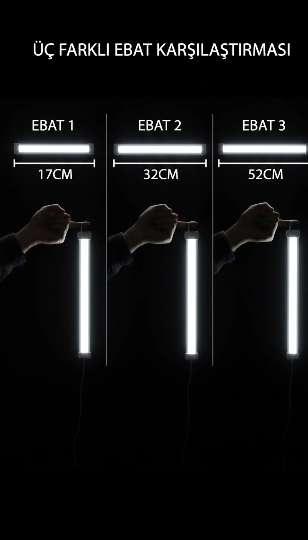 3 Farklı Ebat, Tam Performans: Paket içeriğinde her türlü kullanım alanına uygun 17cm, 32cm ve 52cm uzunluğunda üç farklı boyutta ışıldak bulunmaktadır.