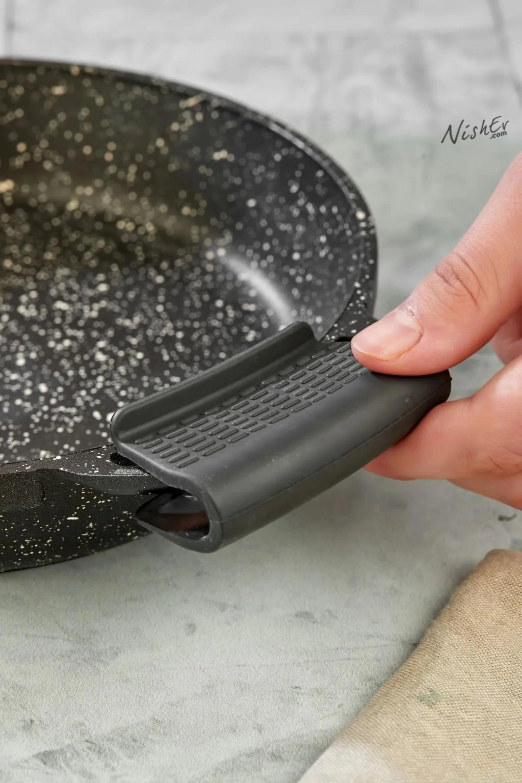 Nishev Yanmaz Yapışmaz Silikon Tava, Sahan Tutacağı Silikon Kulp Tutacak; Isı Yalıtımlıdır.; Kaydırmaz Yapıya Sahiptir.; Tava, Sahan Gibi Ekipmanlarınızı Konforlu ve Güvenli Bir Şekilde Tutmanıza Olanak Tanır.; Standart Ölçülerdedir.; Silikon Tutacaklar Siyah Renklidir.; Görsellerde Bulunan Tava, Sahan Aksesuar Olarak Eklenmiştir Paket İçeriğine Dahil Değildir.; 3 Adet Çift Olarak Gönderim Yapılacaktır.; Paket içeriği: 3 Çift / 6 Adet Silikon Yanmaz Yapışmaz Kulp Tutacağı.;