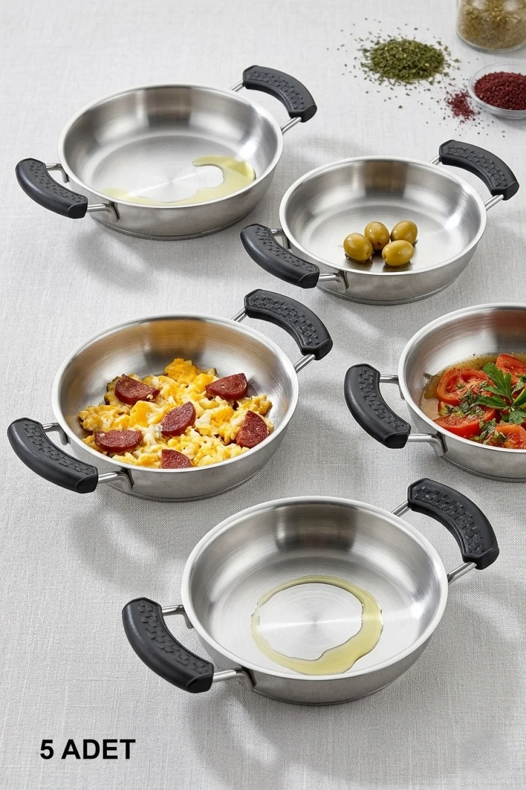 10 parça set, 5 çiftlik yanmaz silikon tava ve sahan tutacıkları ile mutfakta güvenli ve konforlu bir deneyim sunar. Isı yalıtımlı ve kaydırmaz yapısı sayesinde evinizin her köşesinde rahatlıkla kullanabilirsiniz.