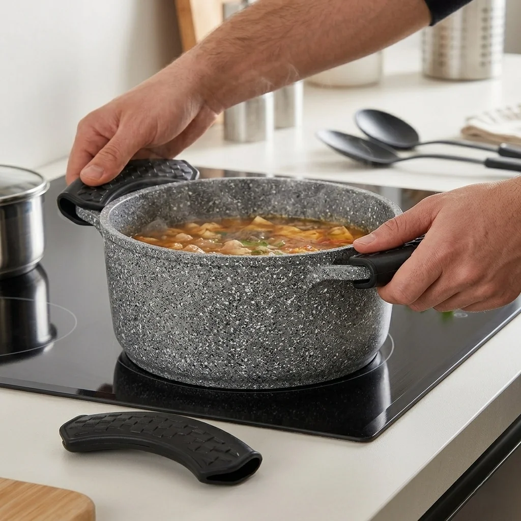 Premium Yanmaz Yapışmaz Silikon Tencere Tutucu Seti – 2'li Çift