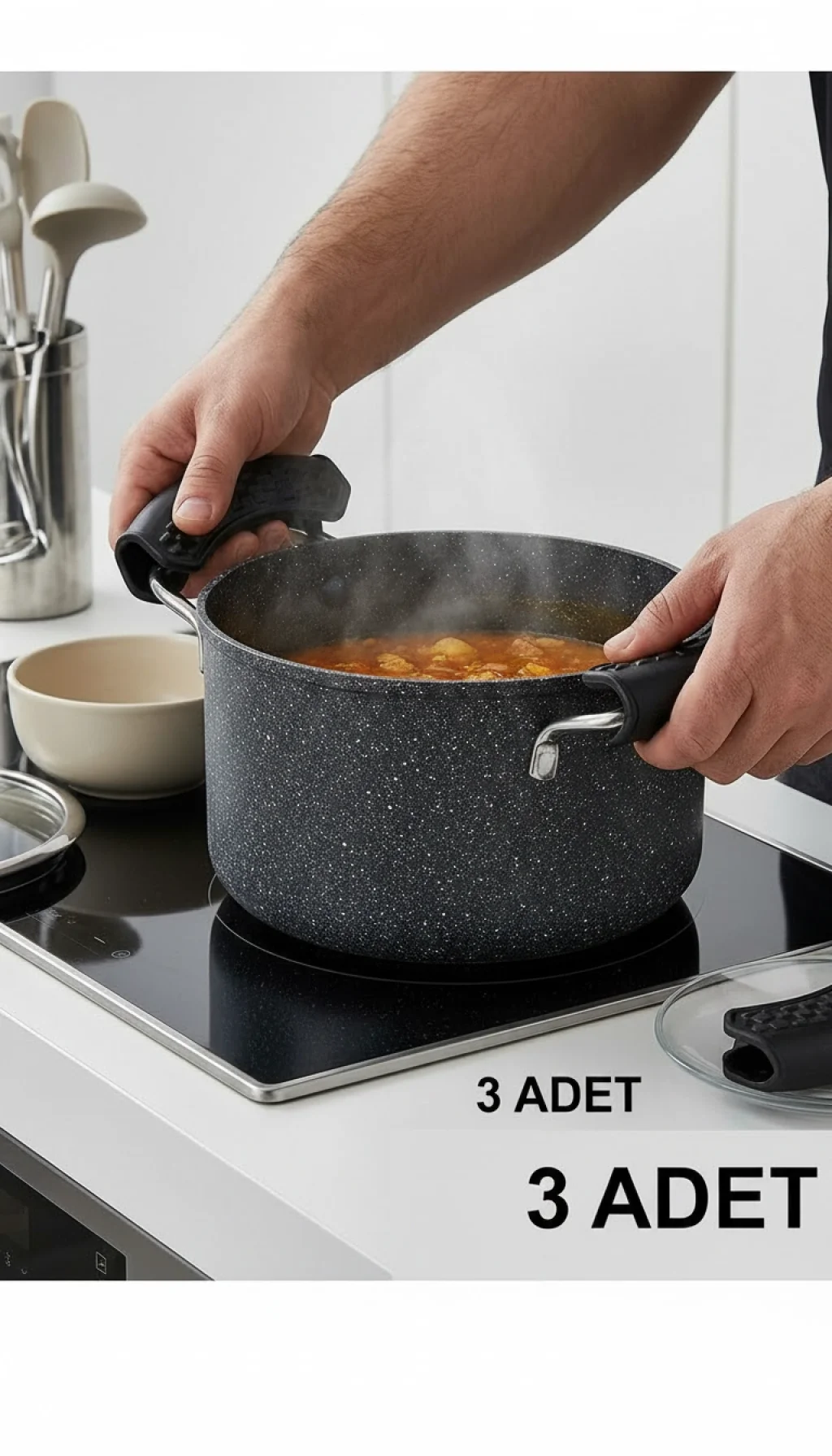 - Kaydırmaz Yapı – Düşme riskini ortadan kaldıran anti‑kayma yüzeyi sayesinde tencere her zaman yerinde kalır.